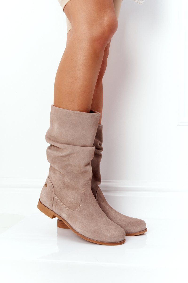 Damskie Zamszowe Kozaki Maciejka 05057-04 Beżowe