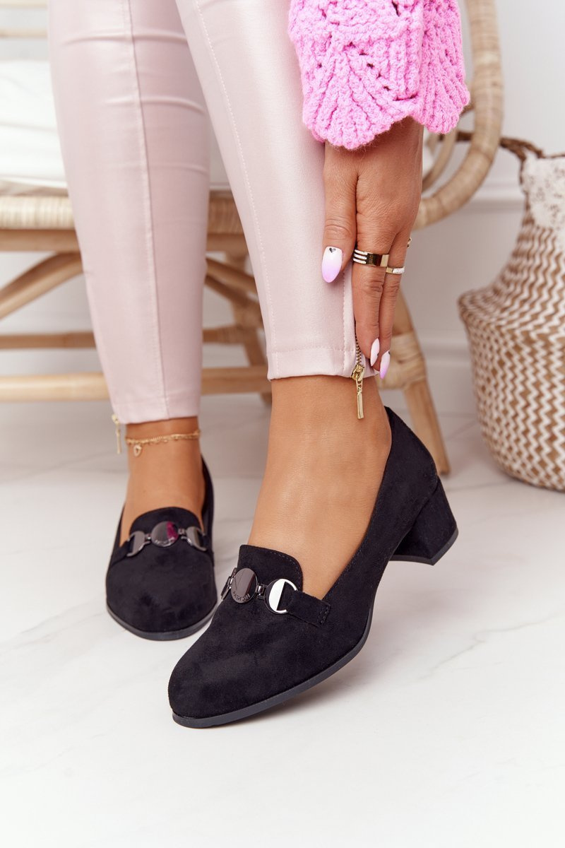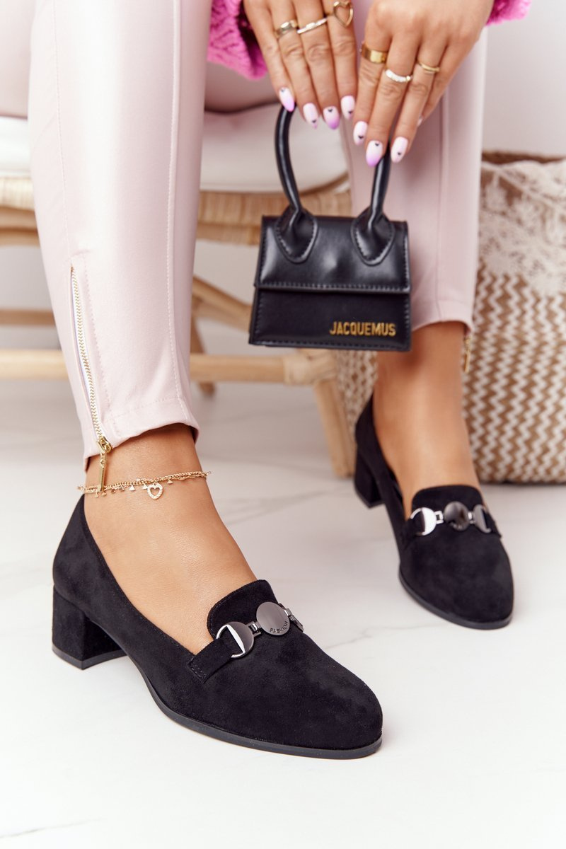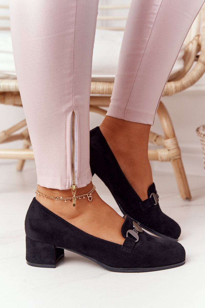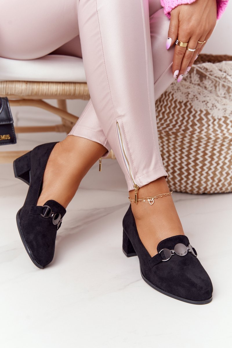 Zamszowe Półbuty Na Obcasie Sergio Leone PB148 Czarne