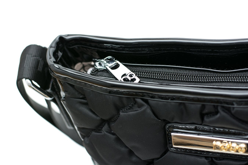 Każda kobieca stylizacja potrzebuje pięknego dopełnienia w postaci obuwia jak i torebki. Dlatego nasze szafy są zaopatrzone w najróżniejsze modele. Bez względu na to na jaką okazję poszukujesz torebki, u nas znajdziesz torbę dostosowaną do każdego stylu życia. Wspaniała torebka renomowanej firmy NOBO może być Twoja! W całości wykonana z pikowanego satynowego materiału, przyozdobiona wstawkami z lakierowanej ekoskóry. Regulowany pasek, jedna zapinana kieszonka z tyłu torebki. Wewnątrz kryją się dwie mniejsze kieszonki - jedna zapinana na zamek, druga natomiast jest idealną przegródką na drobiazgi jak i kosmetyki.