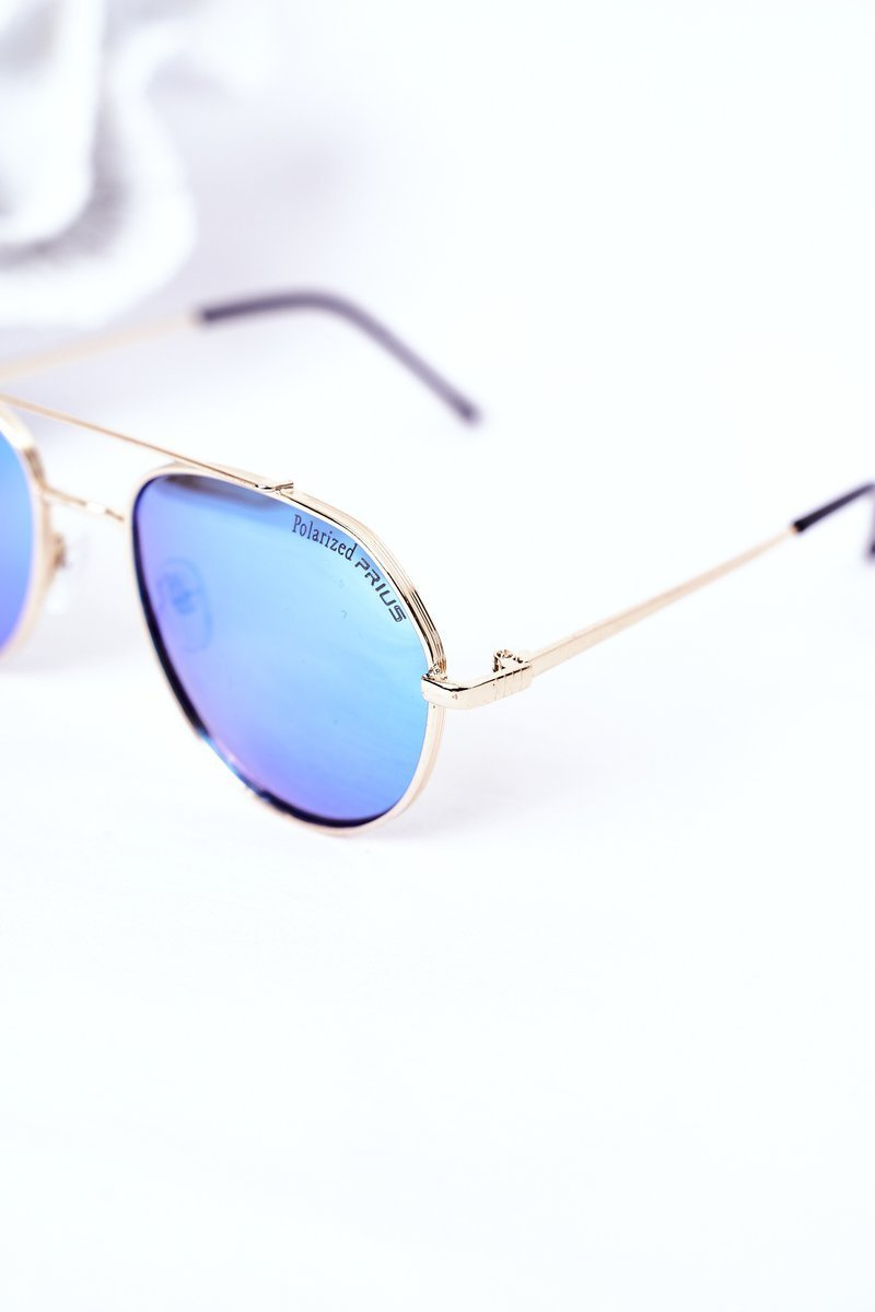 Złote Polaryzowane Okulary Aviatory Z Niebieskimi Szkłami