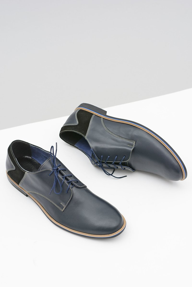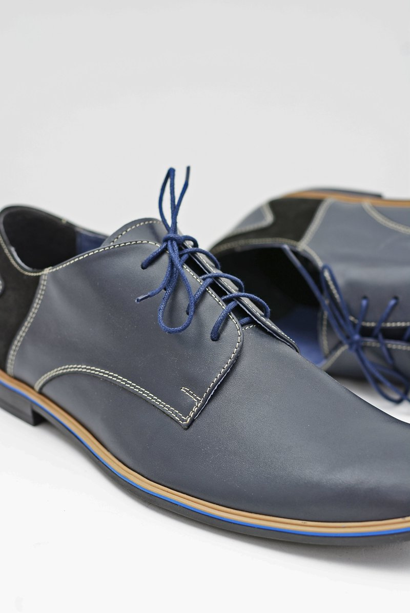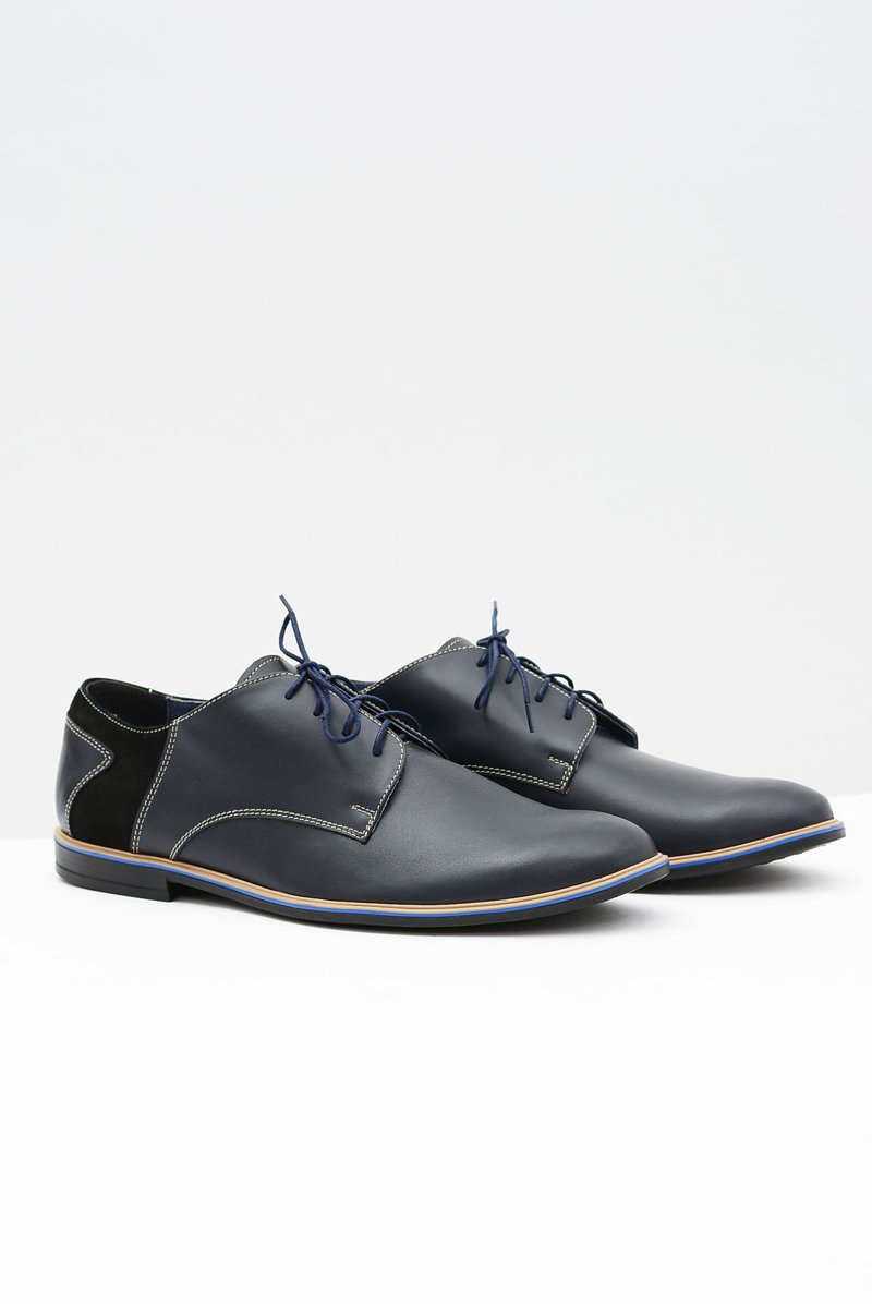 Męskie Półbuty Bednarek Eleganckie Skórzane Granatowe Biagio