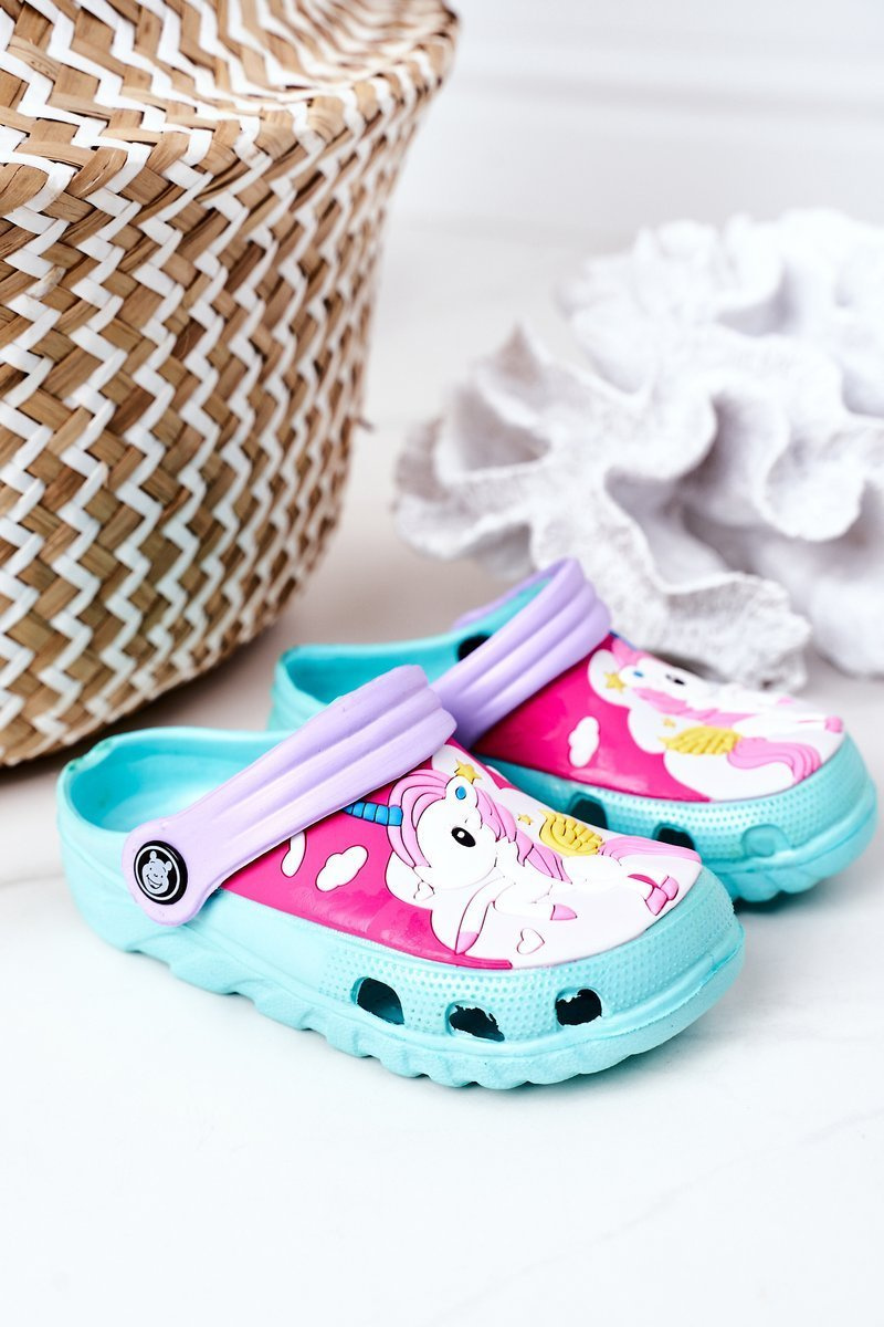 Dziecięce Piankowe Klapki Kroksy Z Jednorożcem Turkusowe