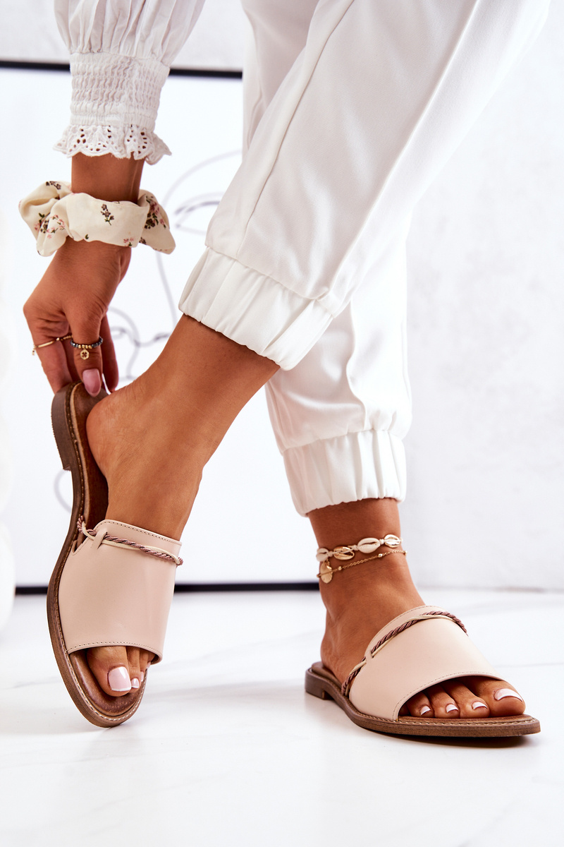 Skórzane Klapki Lewski Shoes 3047 Beżowe