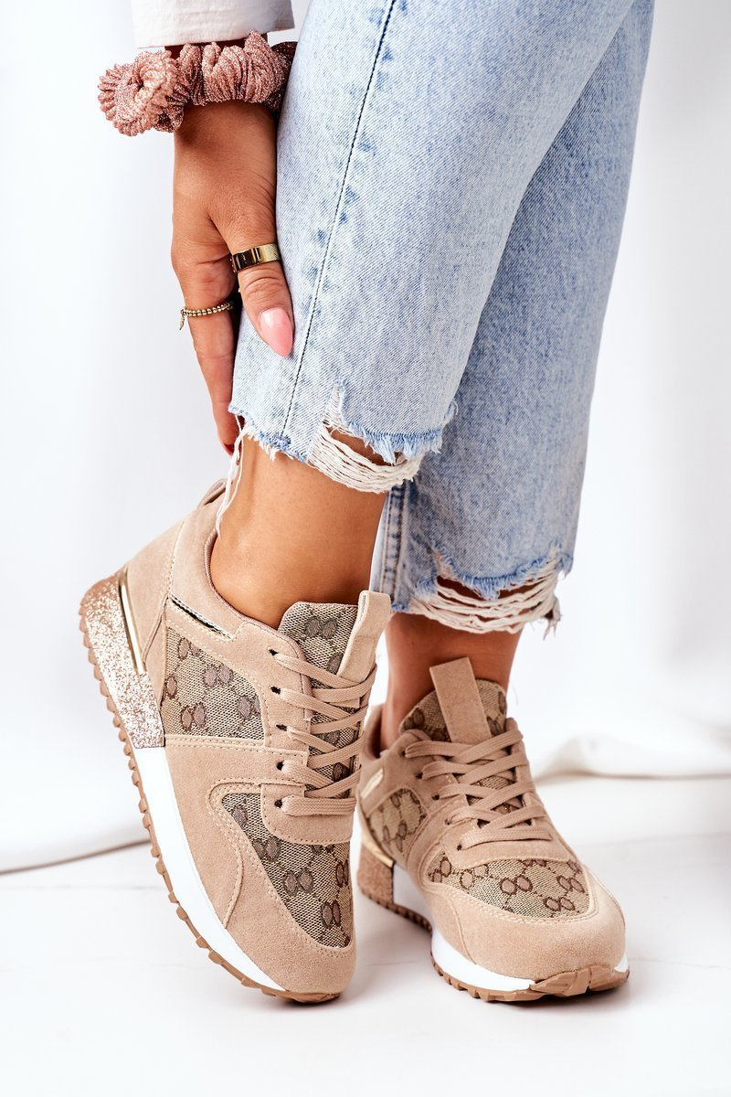Sportowe Buty Sneakersy Beżowo-Złote Aruba
