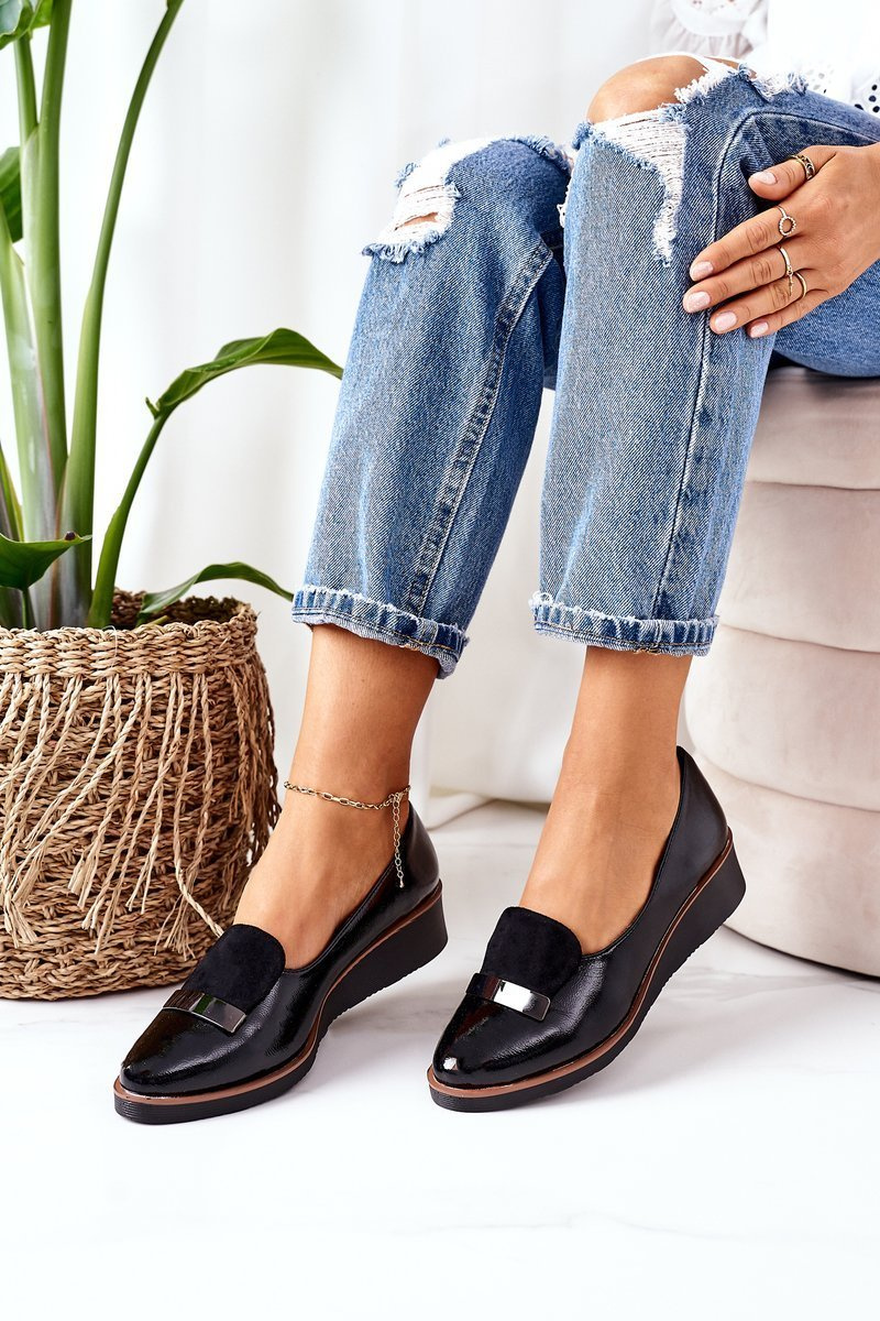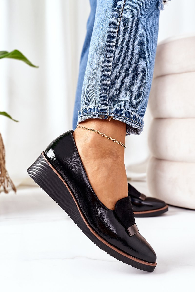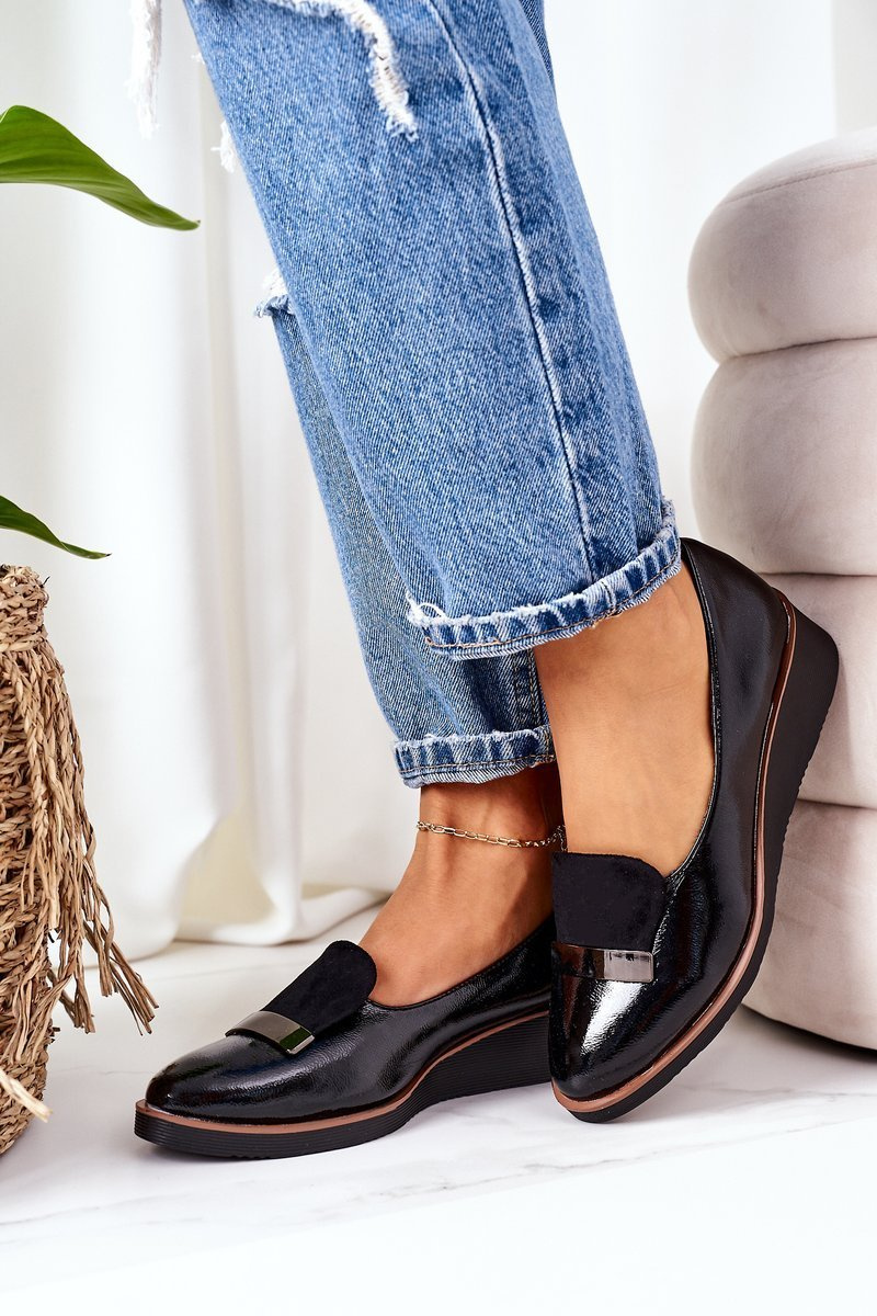 Lakierowane Półbuty Na Koturnie POTOCKI 12032 Czarne
