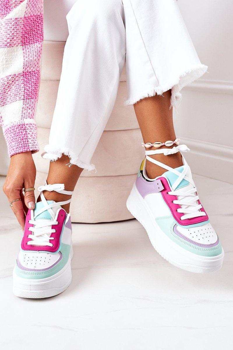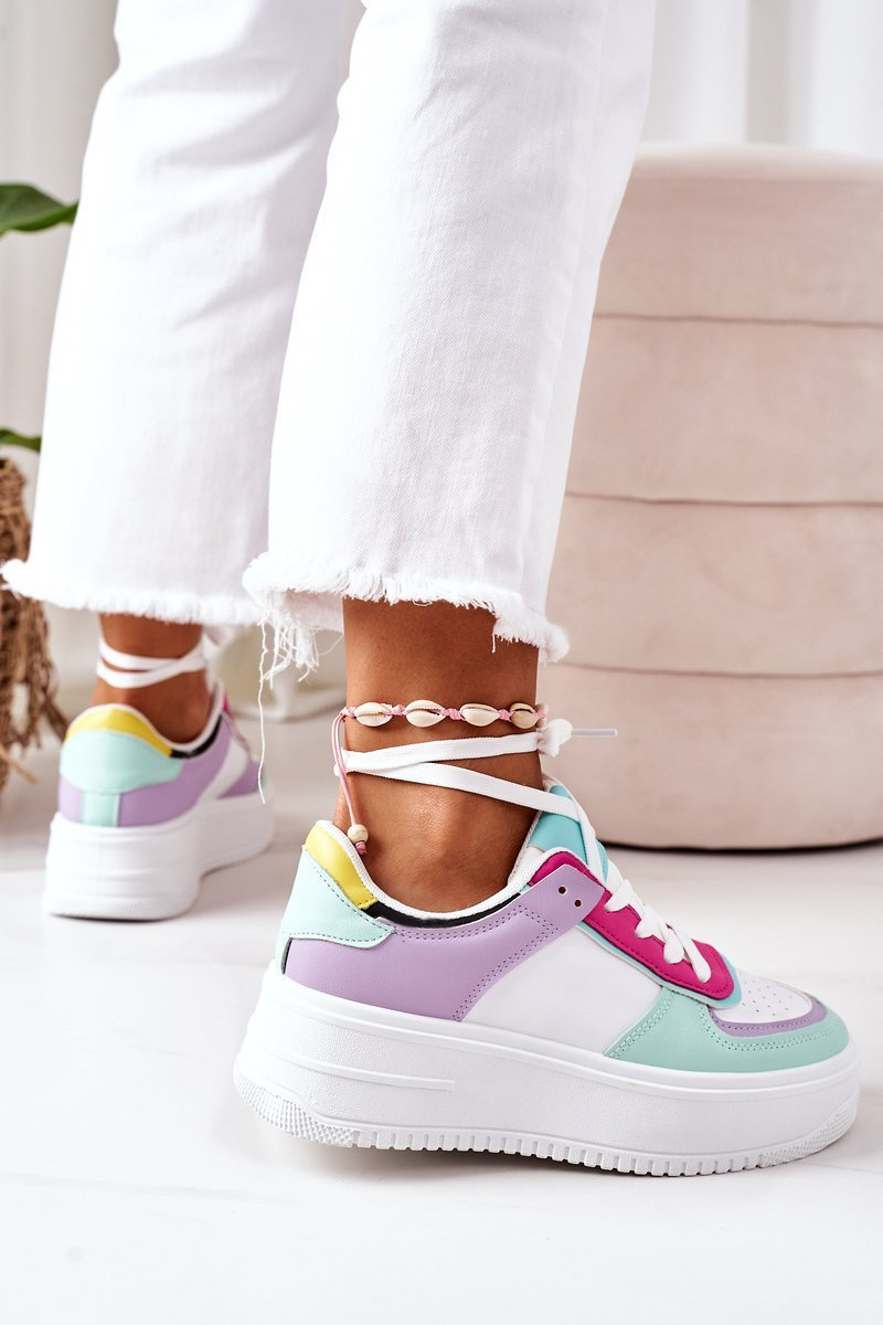 Sportowe Buty Sneakersy Na Platformie Biało-Fioletowe Freedom