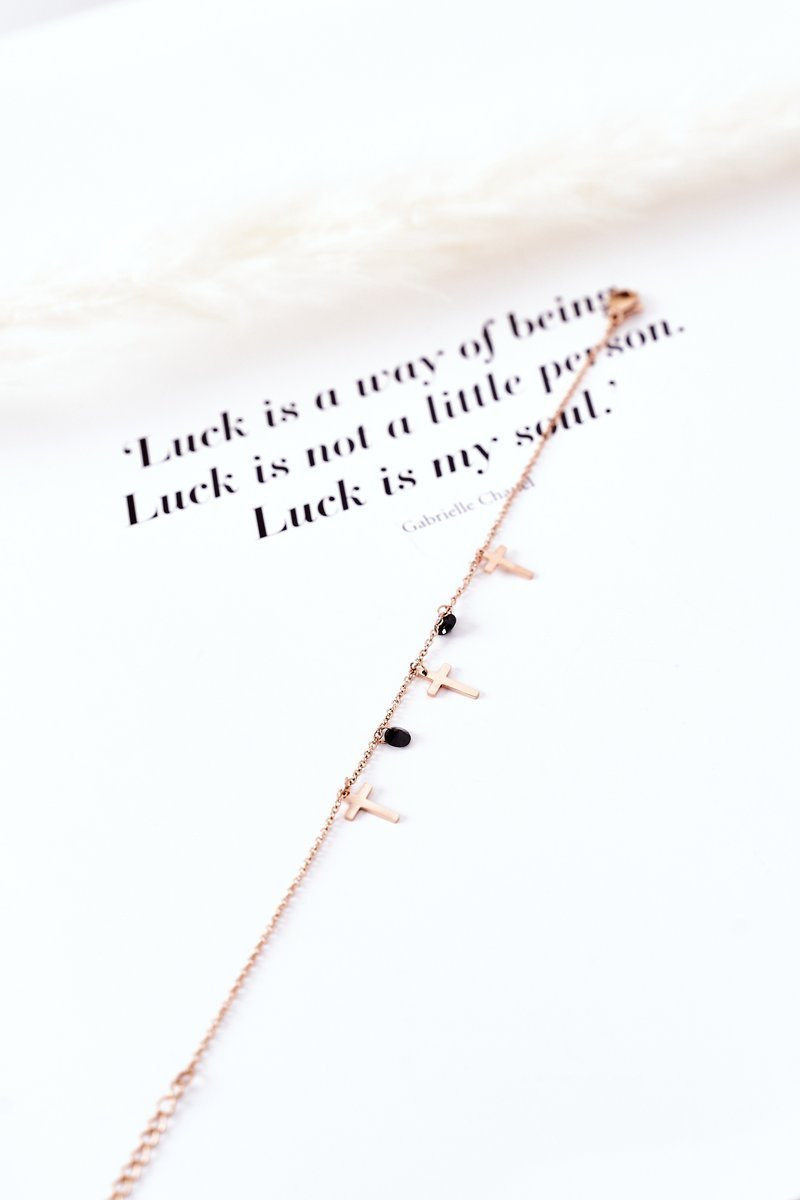 Bransoletka Na Łańcuszku Z Krzyżykami Różowe Złoto