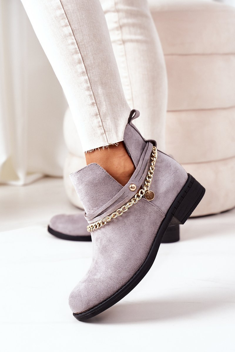 Zamszowe Botki Z Łańcuszkiem Szare Elvira