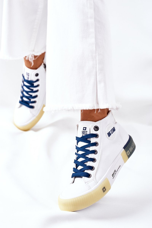 Skórzane Wysokie Trampki Big Star II274137 Białe