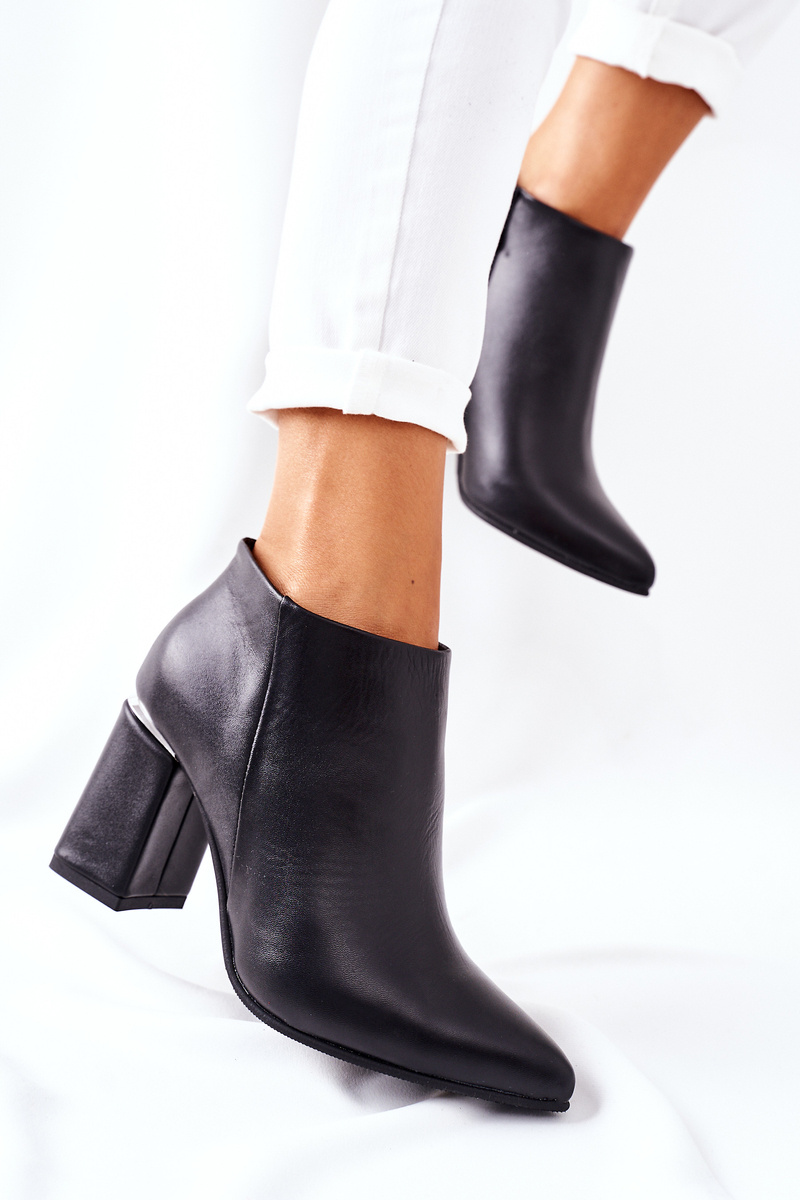 Skórzane Botki Na Słupku Czarne Raglan