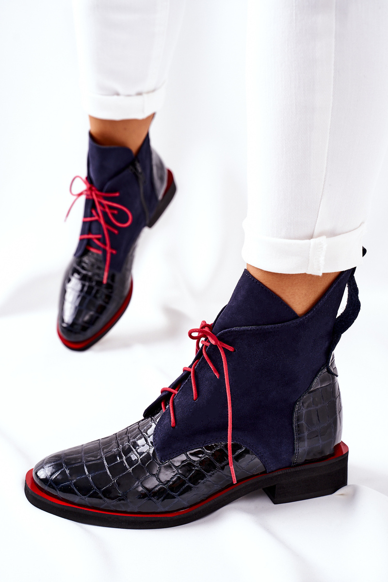 Skórzane Botki Wzór Aligatora Granatowe Bruselle