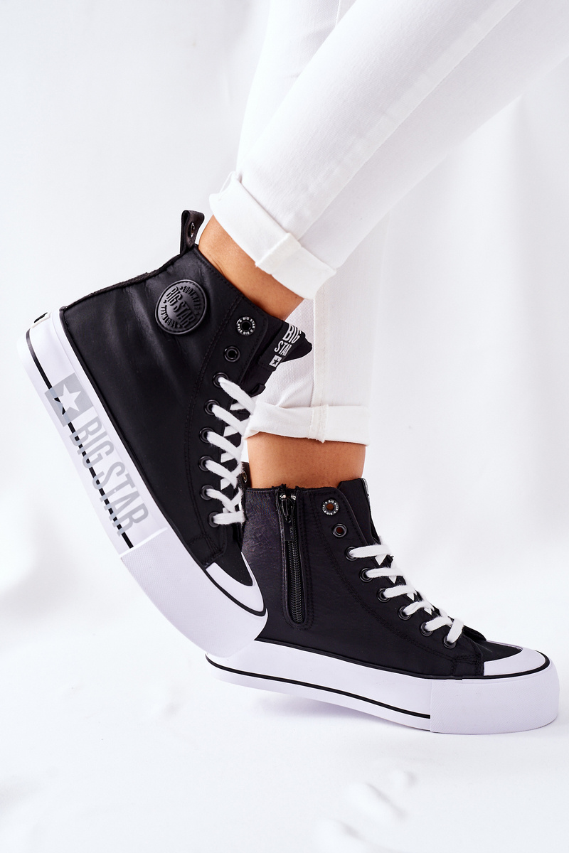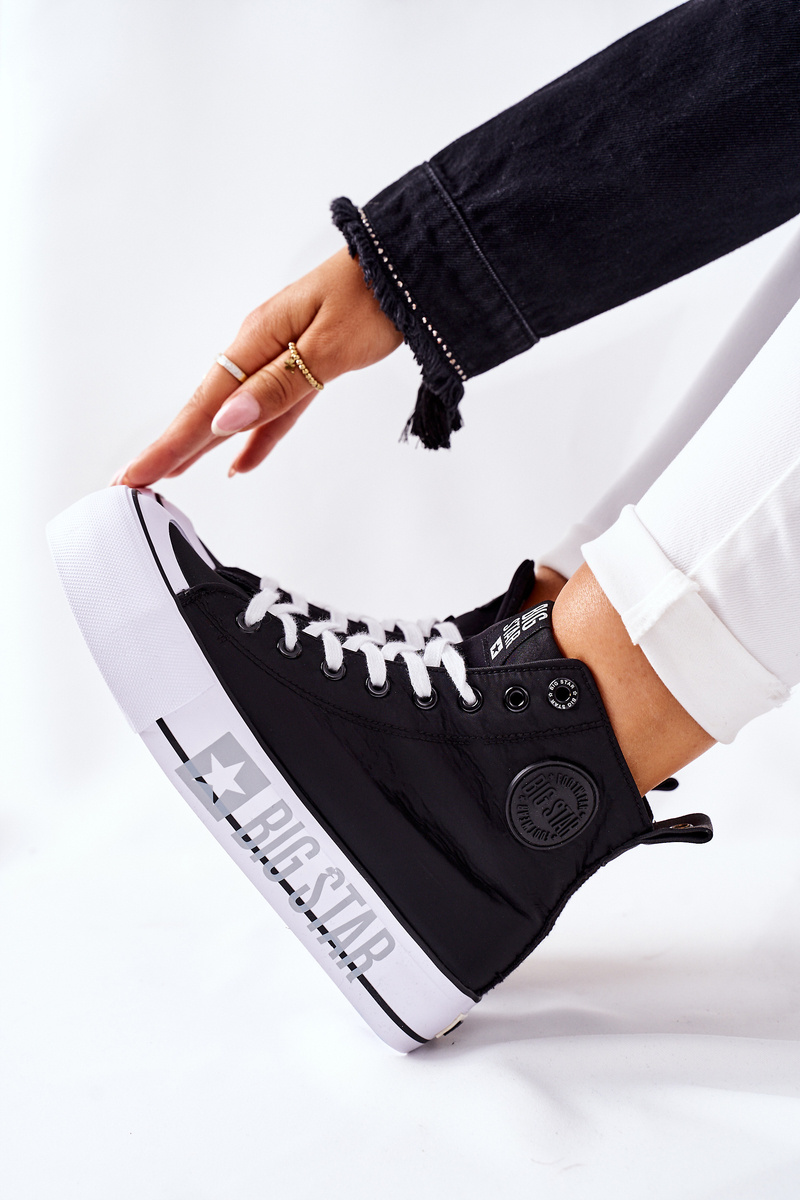 Damskie trampki polskiej marki BIG STAR. Kultowe już trampki pasują do wielu stylizacji. Buty dobrze dopasowują się do kształtu stopy, posiadają miękką, materiałową wkładkę oraz antypoślizgową podeszwę. Wykonane są z odpornej na zabrudzenia tkaniny. Koniecznie sprawdź całą naszą kolekcję butów BIG STAR. Przy wyborze rozmiaru prosimy sugerować się tabelą rozmiarów.