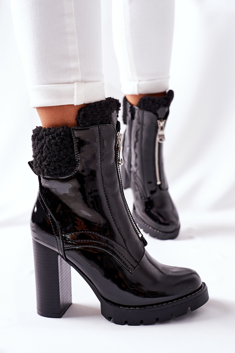 Czarne lakierowane botki to hit tego sezonu! Wnętrze butów wyścielone miłym w dotyku kocem obuwniczym! Suwak na boku ułatwi zakładanie! Podczas wyboru rozmiaru prosimy kierować się tabelą rozmiarów.