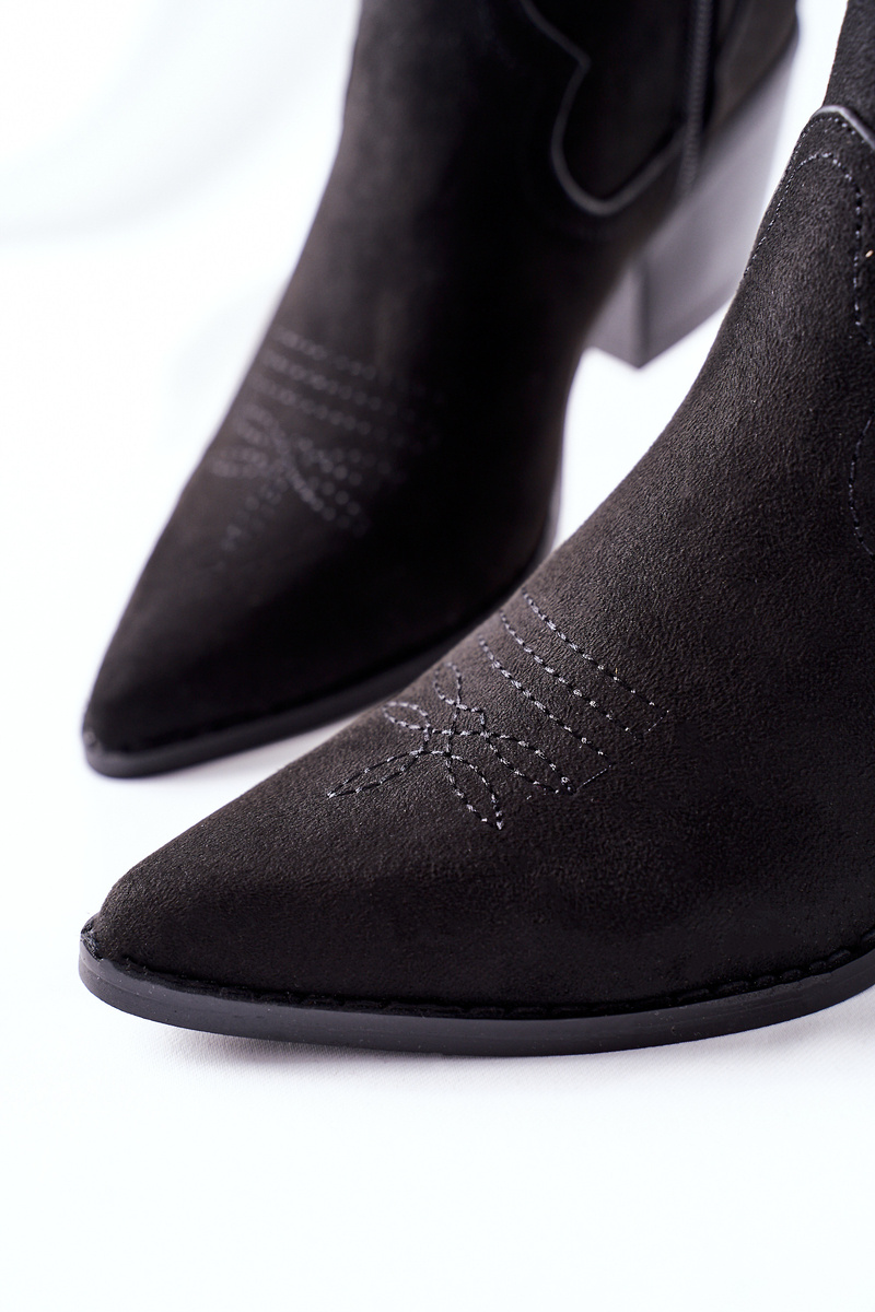 Damskie Botki Kowbojki Zamszowe Czarne Beamhurst