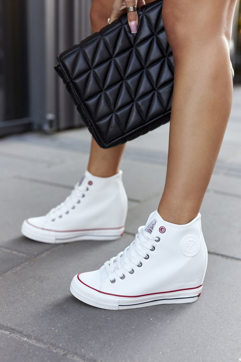Skórzane trampki na koturnie marki Cross Jeans wykonane z wysokiej jakości eko skóry. Koniecznie sprawdź całą naszą kolekcję butów marki Cross Jeans! Przy wyborze rozmiaru prosimy kierować się tabelą rozmiarów.