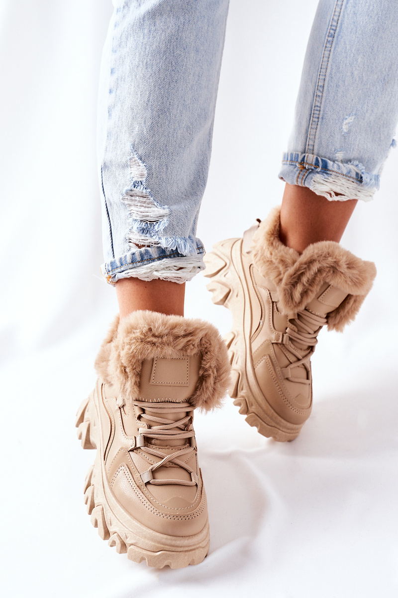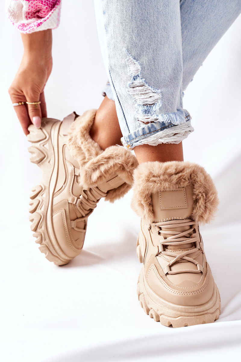 Trapery wykonane są ze skóry ekologicznej. Wewnątrz znajduje się ciepłe i miłe w dotyku futerko. Buty idealnie sprawdzą się w zimowe dni! Przy wyborze rozmiaru prosimy sugerować się tabelą rozmiarów.