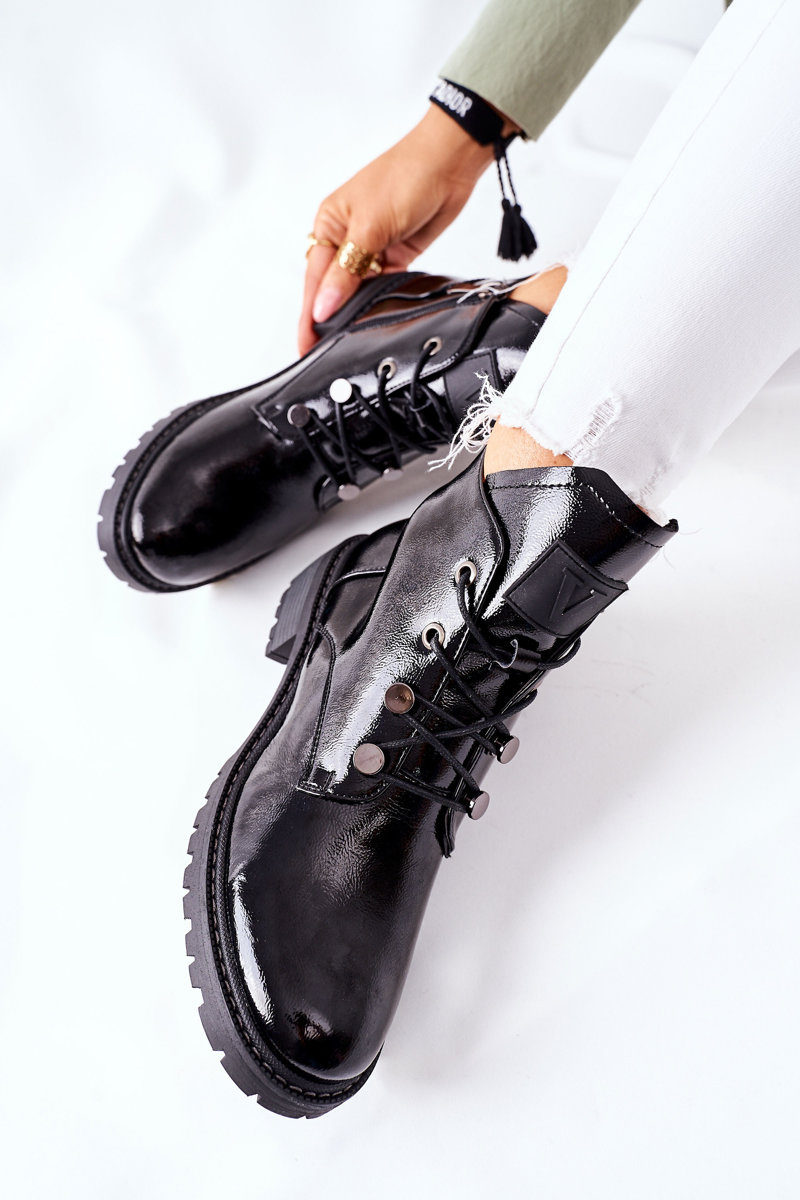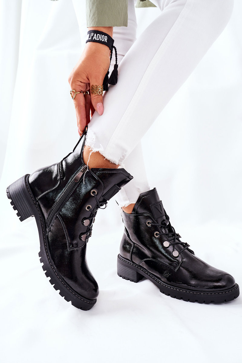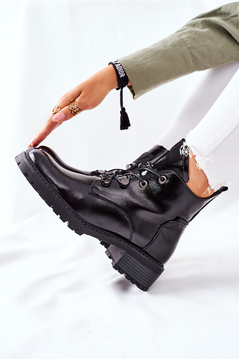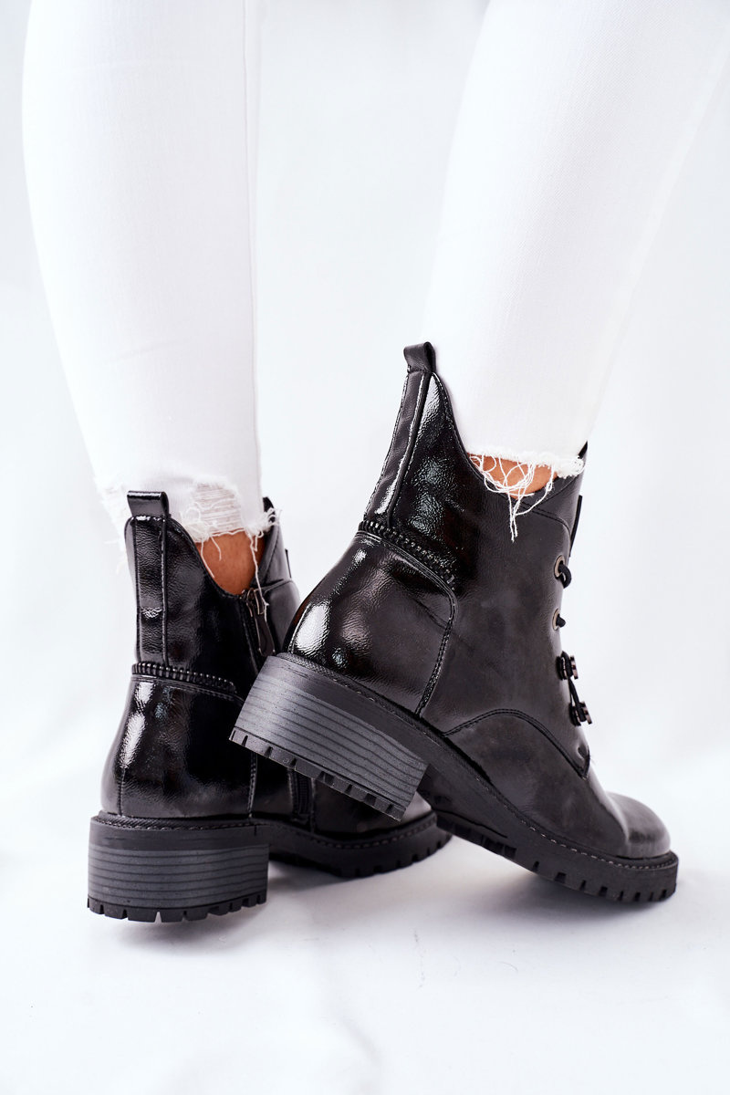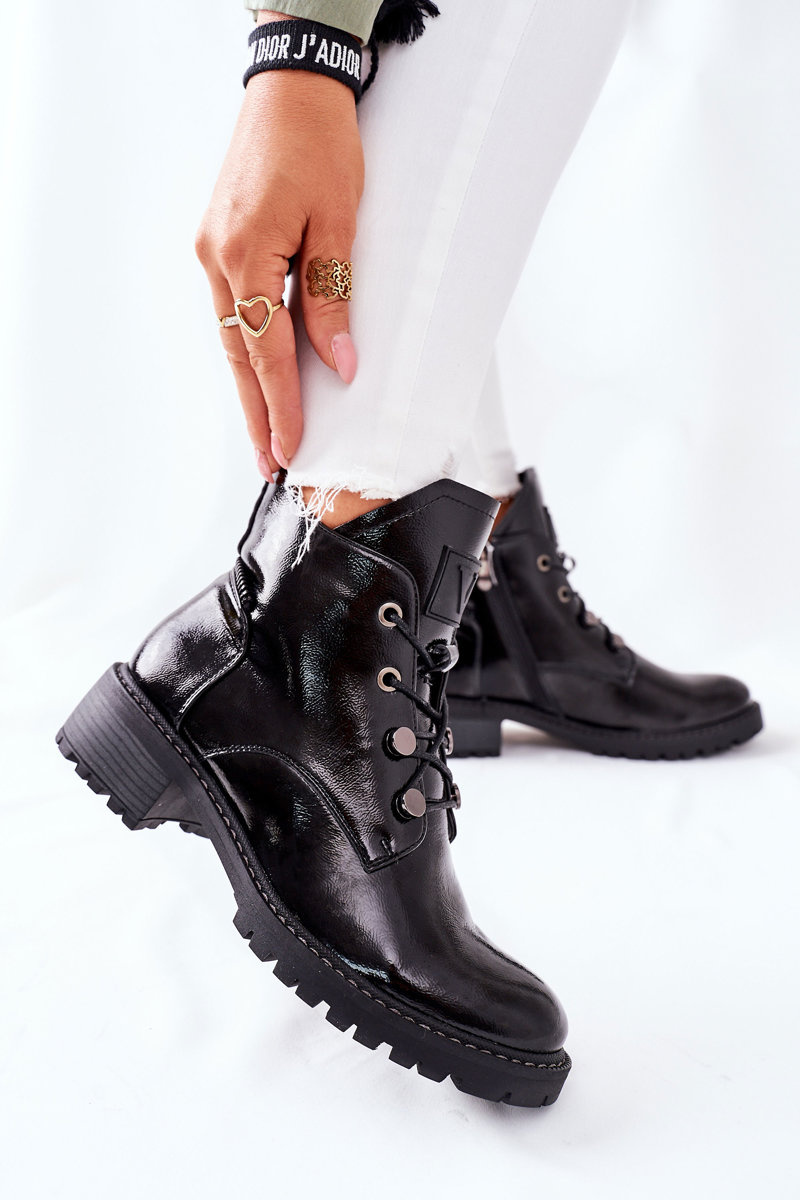 Lakierowane Ocieplane Botki Czarne Cloghan