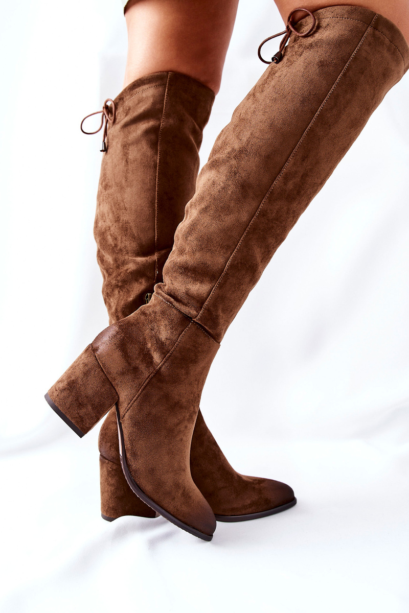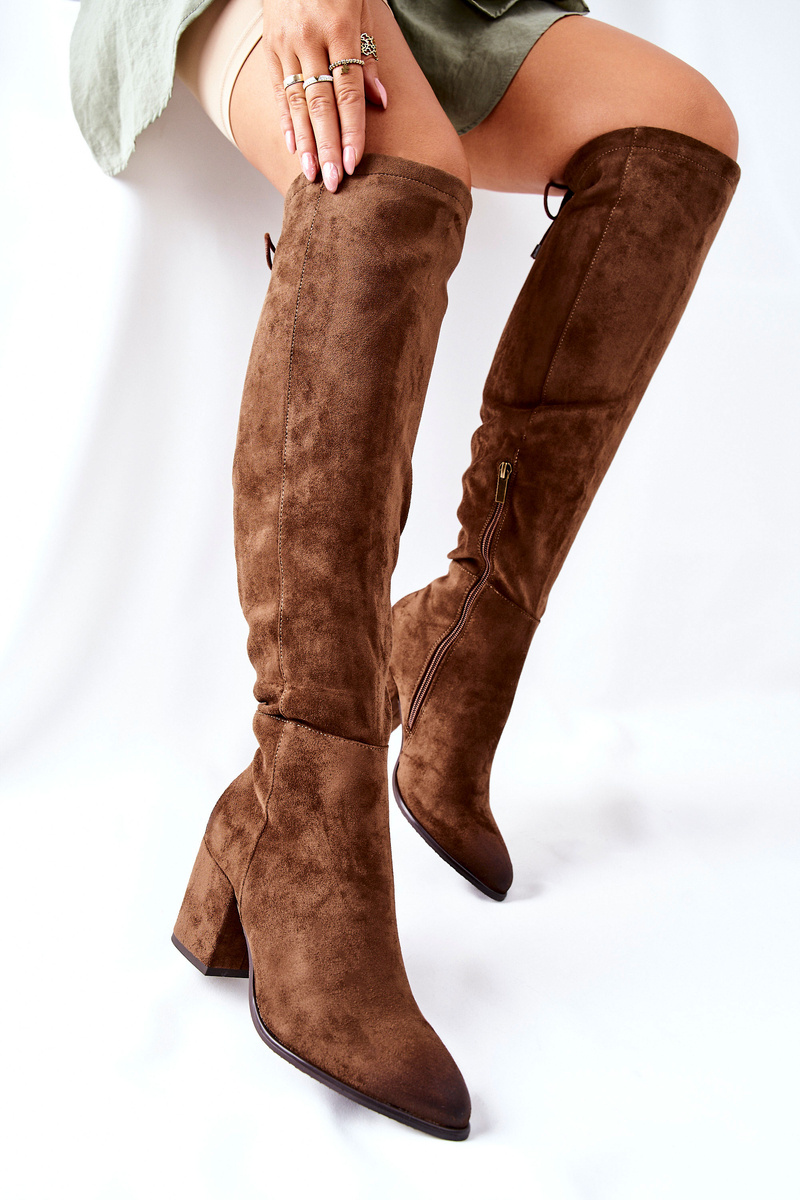 Kozaki Damskie Na Słupku Zamszowe Brązowe Corrig