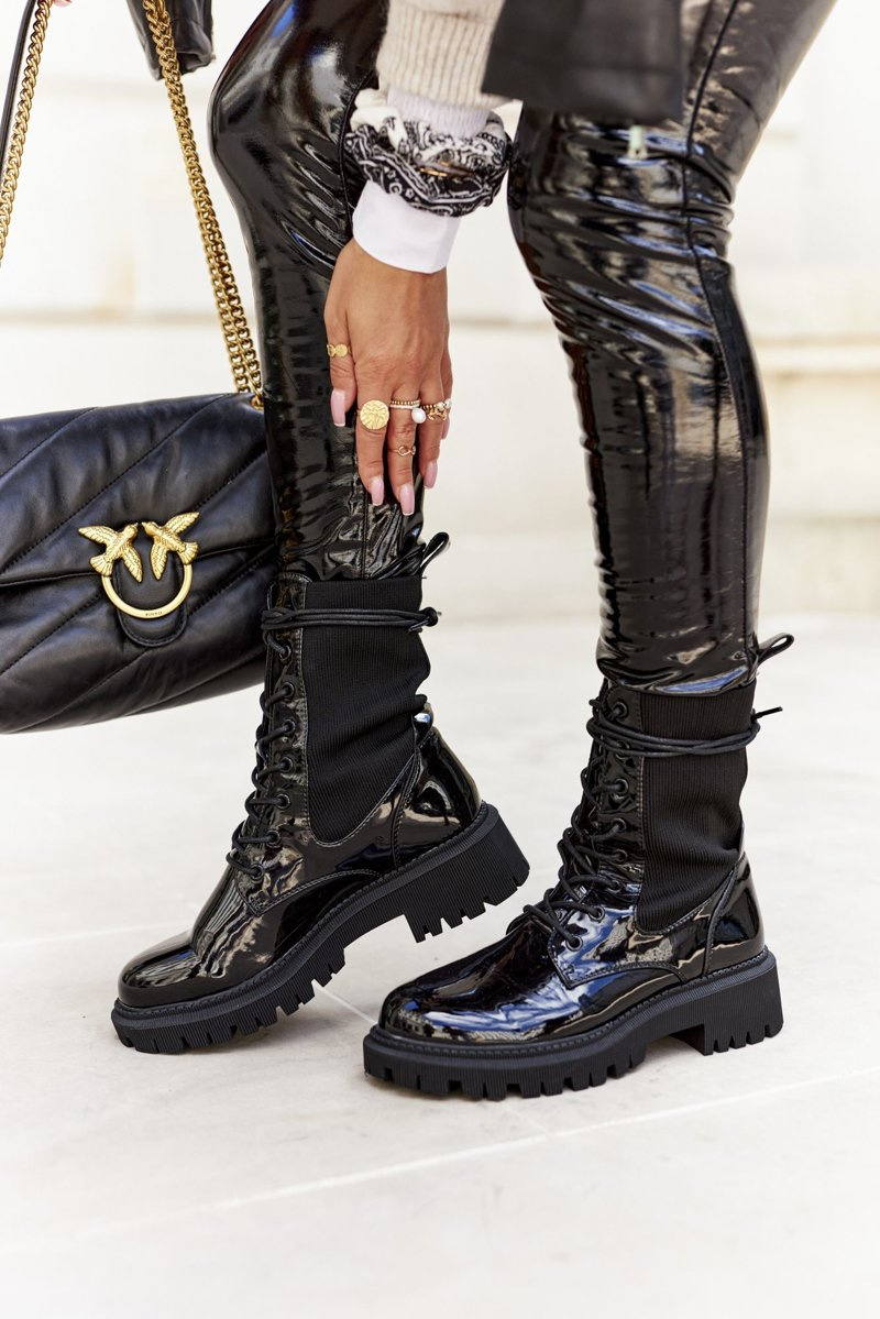 Damskie Botki Workery Lakierowane Czarne Maxine
