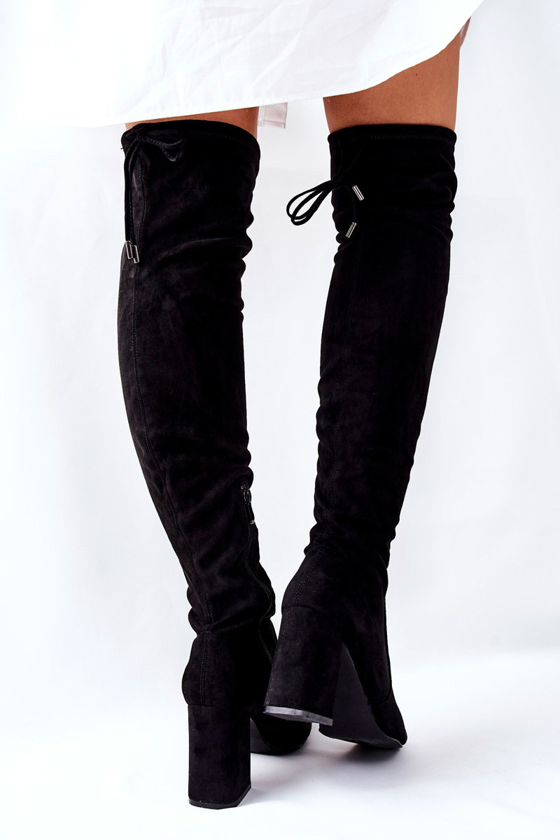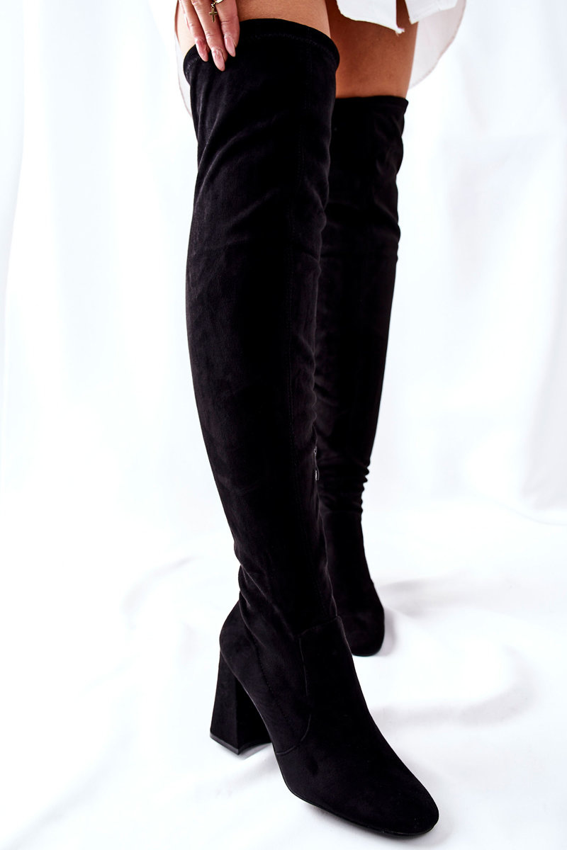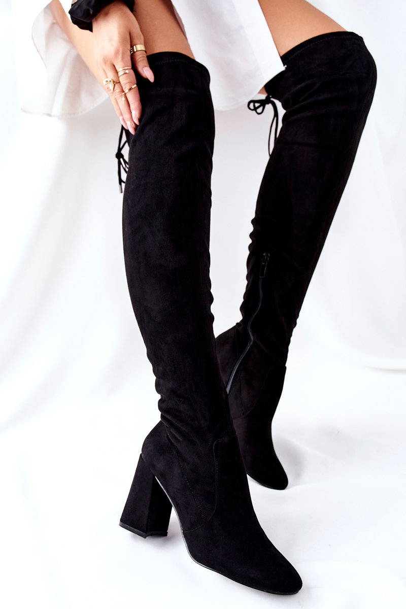 Kozaki Na Słupku Zamszowe Czarne Agaloa