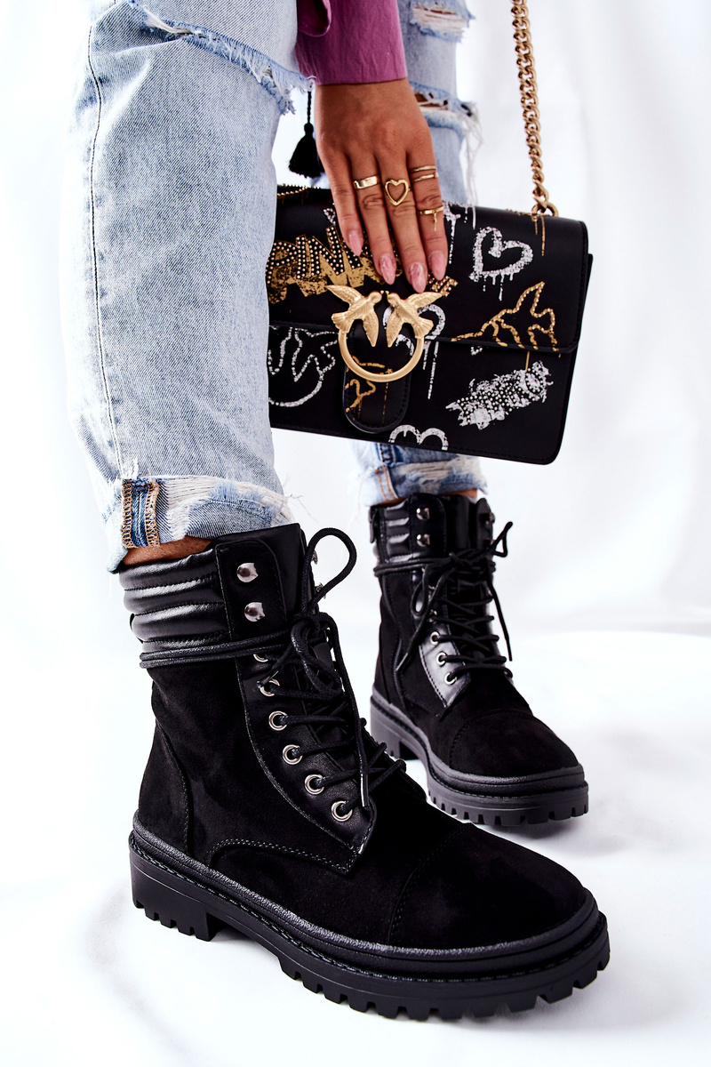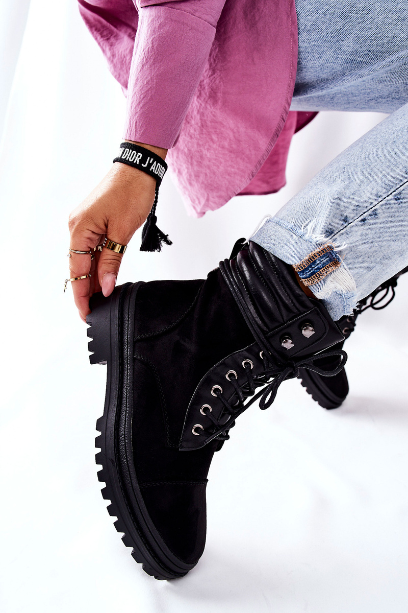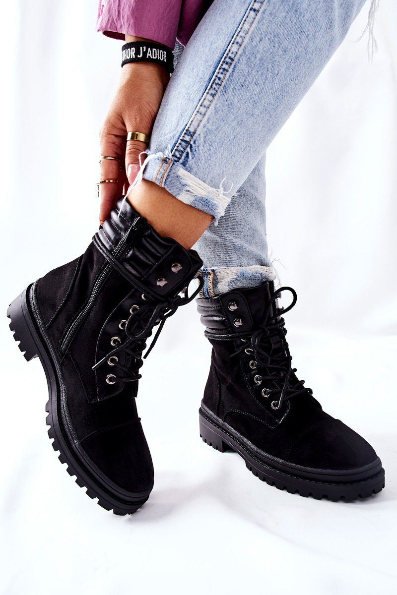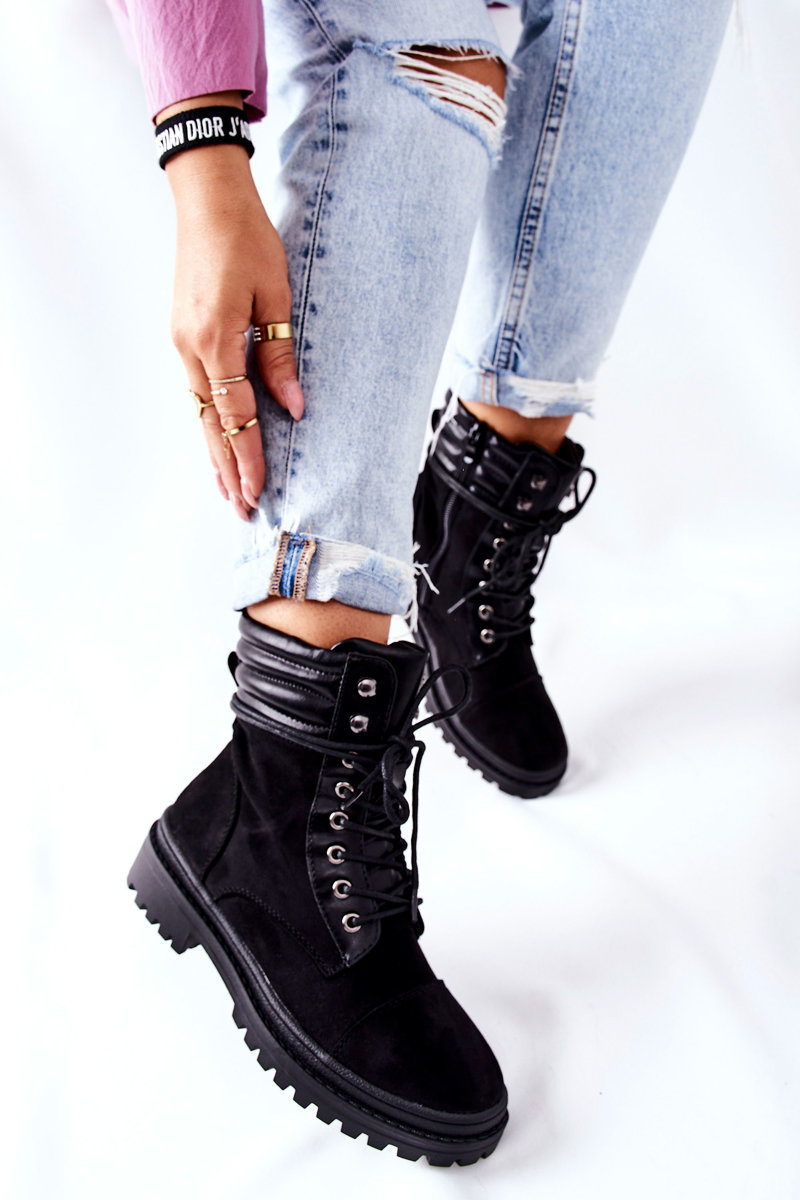 Botki Damskie Workery Zamszowe Czarne Deliopis