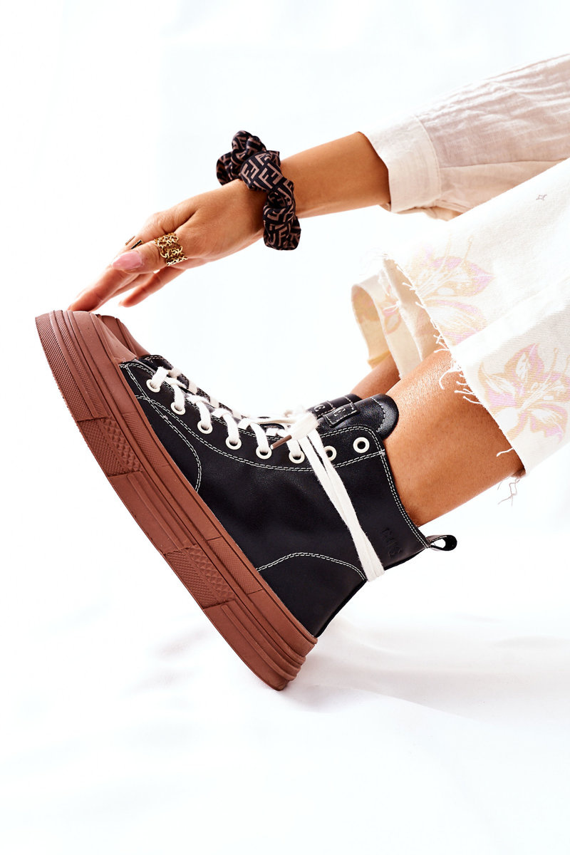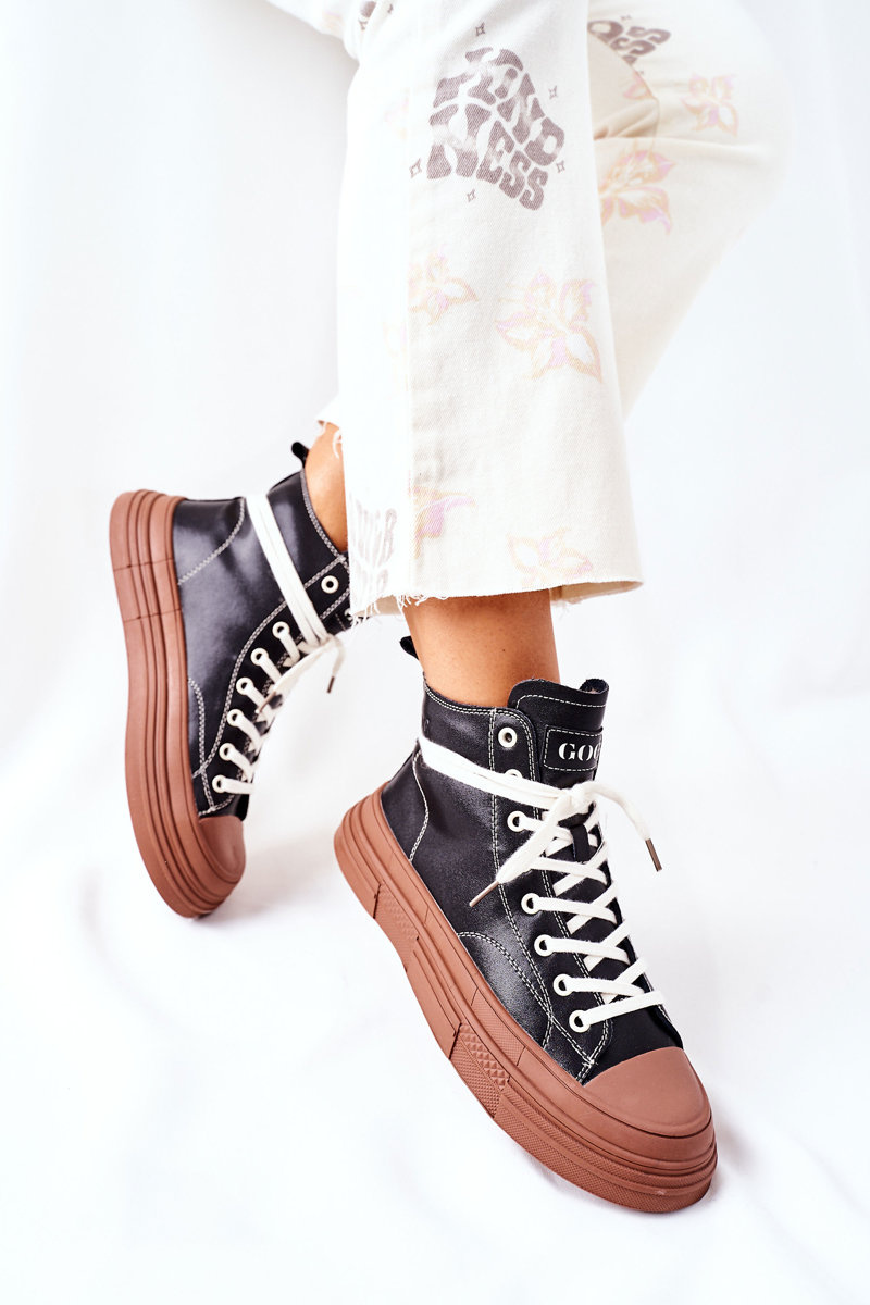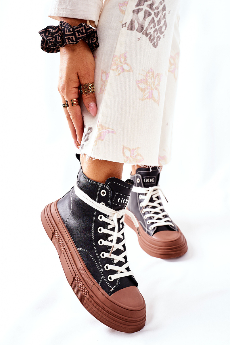 Damskie Ocieplane Trampki GOE Wysokie II2N4033 Czarne