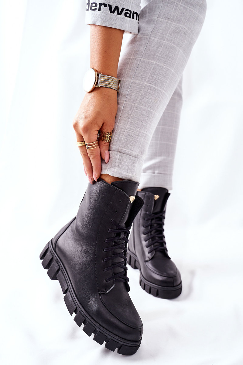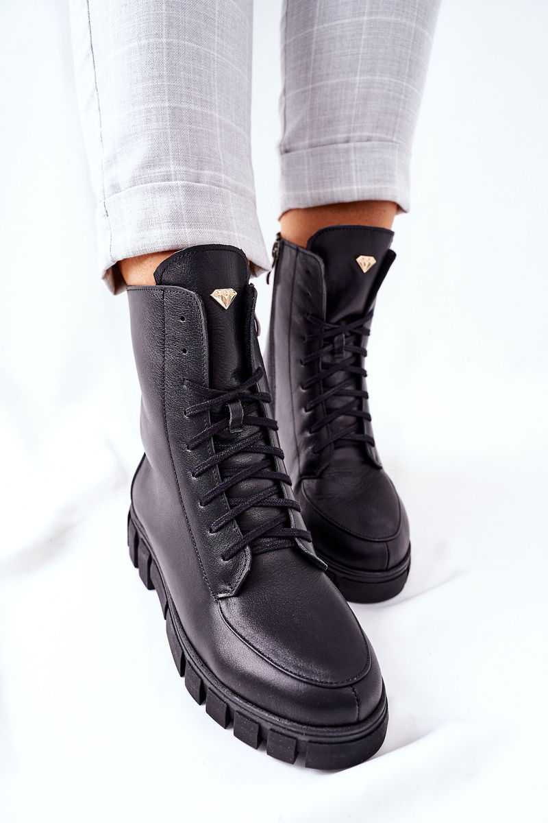 Damskie Skórzane Botki Nicole 2673 Czarne
