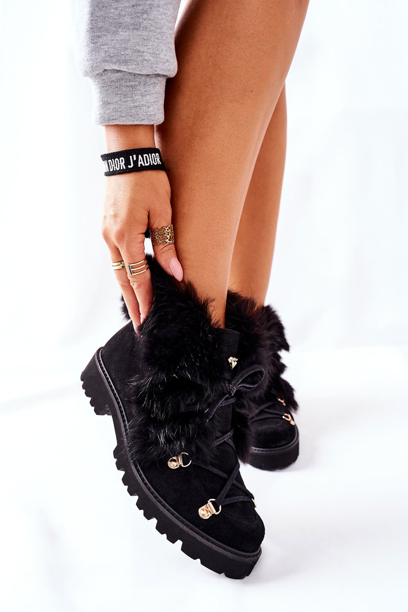 Damskie Skórzane Welurowe Botki Nicole Czarne 2680/028