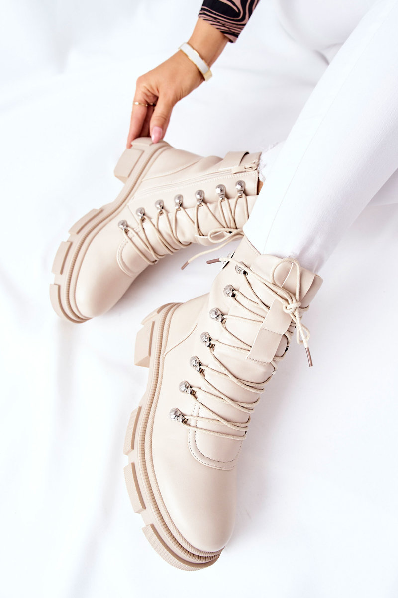Damskie Ocieplane Botki Trapery Beżowe Perfect