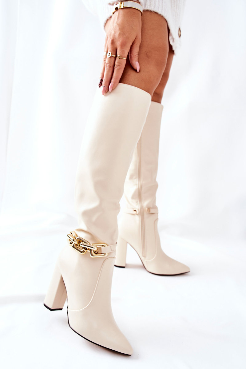 Ocieplane Kozaki Na Słupku Z Łańcuchem Beżowe Franti