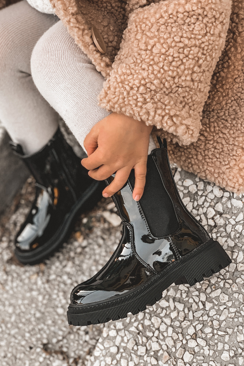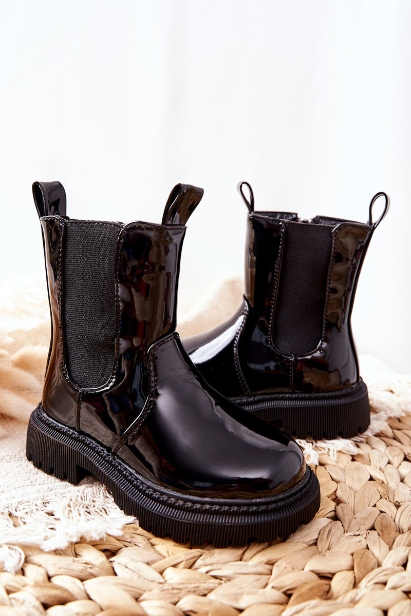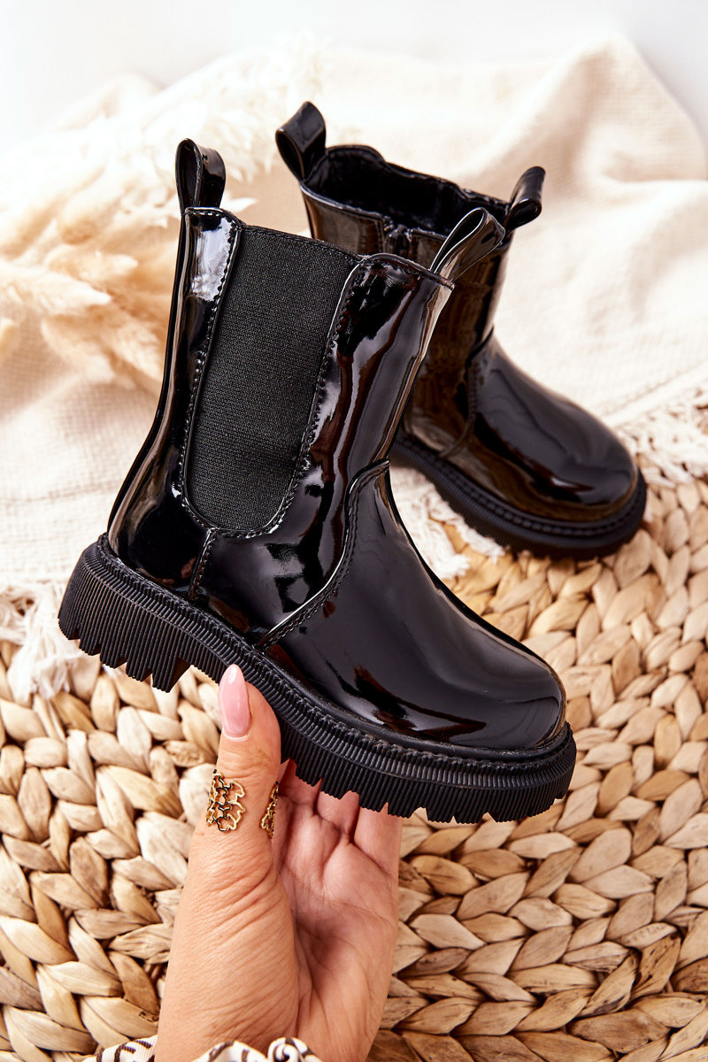 Dziecięce Botki Ocieplane Lakierowane Czarne Aletris