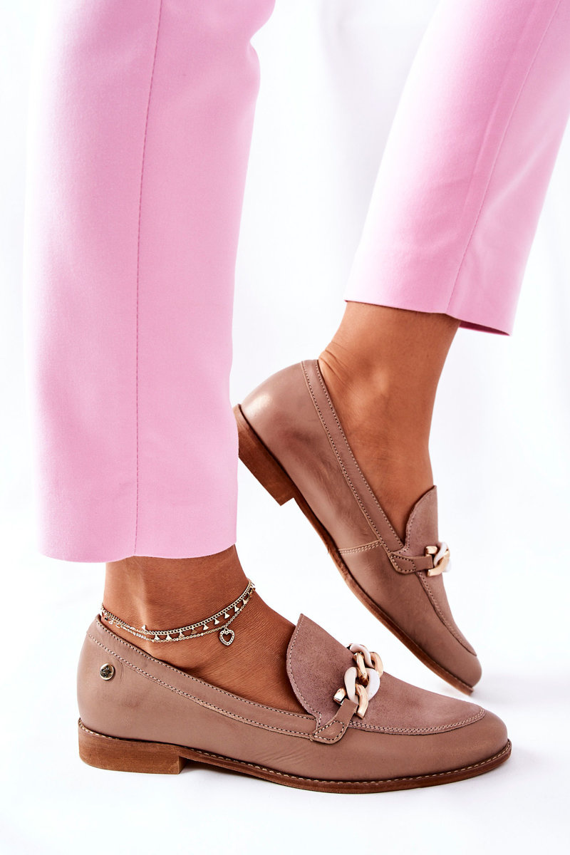 Damskie Półbuty Maciejka Lakierowane Loafery Beżowe 4099B-04