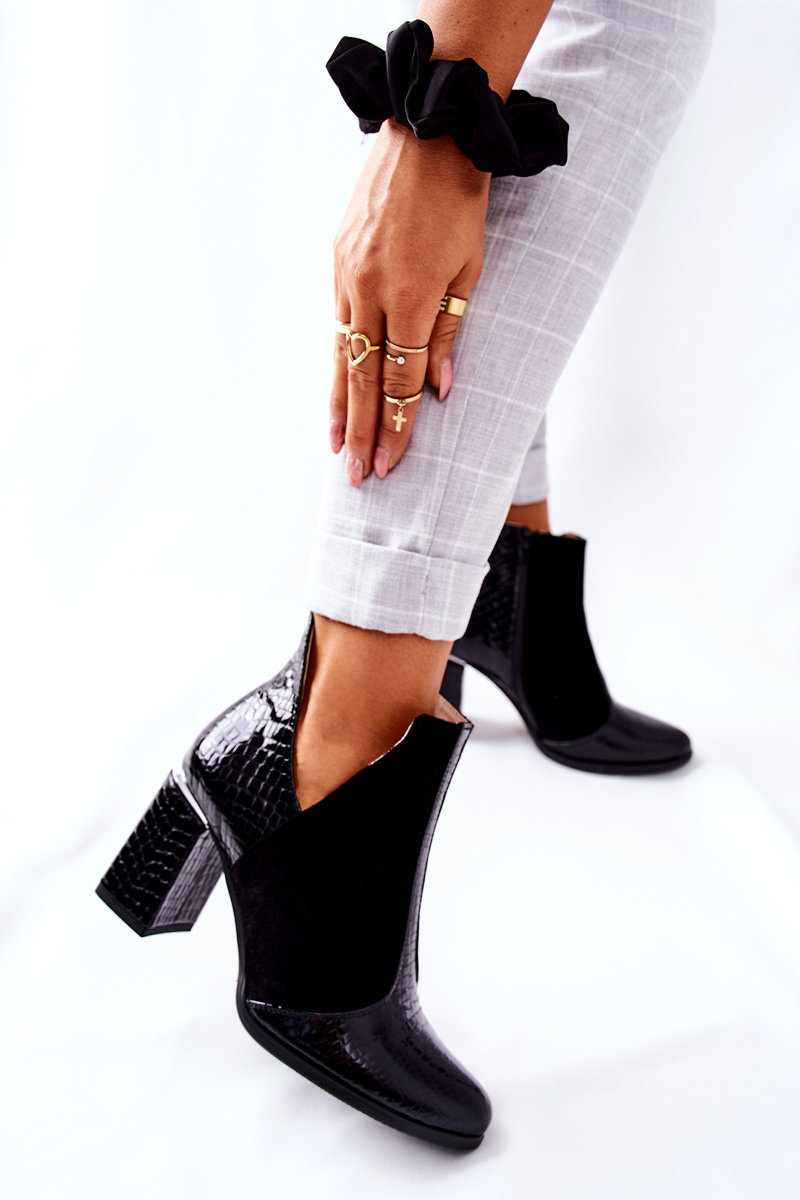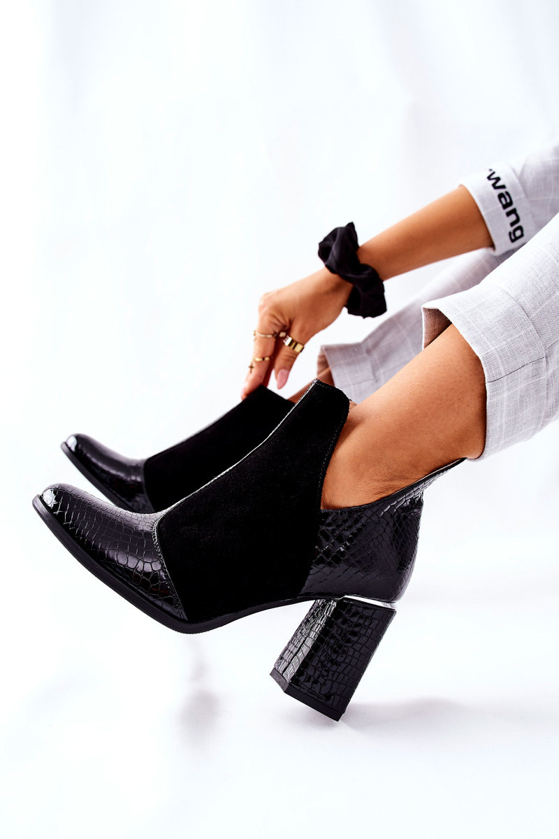 Damskie Skórzane Botki Na Słupku Czarne I Wish