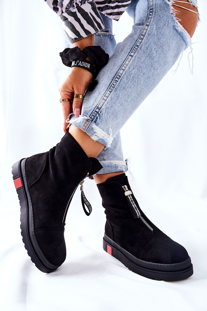 Botki na wyższej podeszwie. Wykonane z zewnątrz z eko zamszu. Wsuwane oraz zapinane na suwak W środku ocieplane kocem obuwniczym. Sprawdź całą kolekcję! Botki powinny znaleźć się w garderobie każdej kobiety! Przy wyborze rozmiaru prosimy sugerować się tabelą rozmiarów.