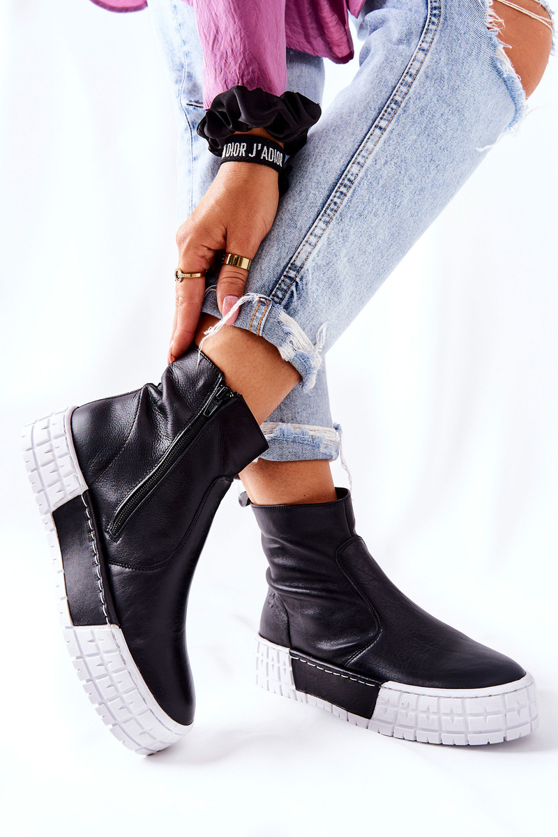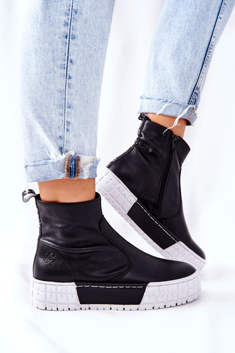 Skórzane Botki Na Platformie Czarne Maciejka 05216-01
