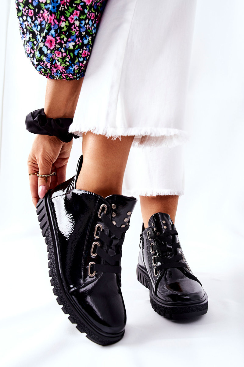 Eleganckie półbuty marki Sergio Leone. Buty wykonane są z najwyższą starannością z lakierowanej skóry ekologicznej. Buty są w środku ocieplane kocem obuwniczym. Posiadają wiązanie oraz suwak. Ozdobne dżety na języku. Półbuty od Sergio Leone są idealne na chłodniejsze dni! Przy wyborze rozmiaru prosimy sugerować się tabelą rozmiarów.