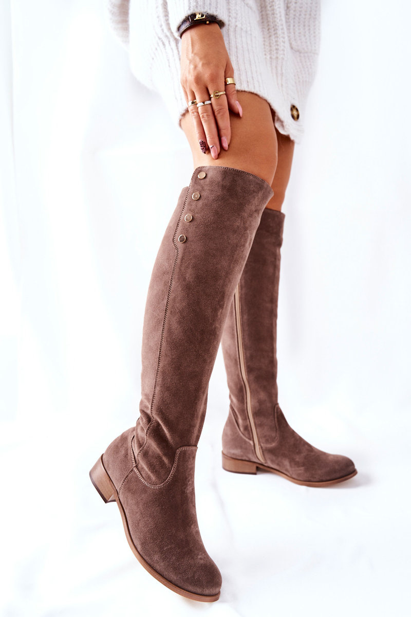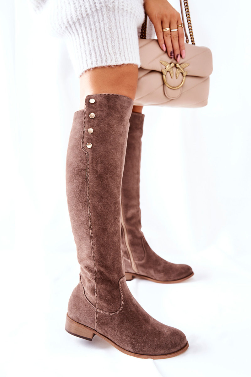 Zamszowe Skórzane Kozaki Lewski 2840 Brązowe