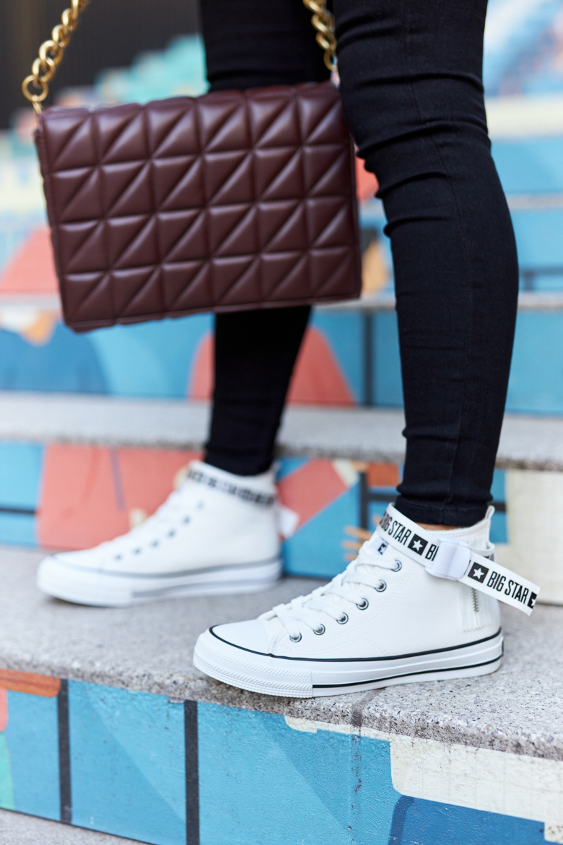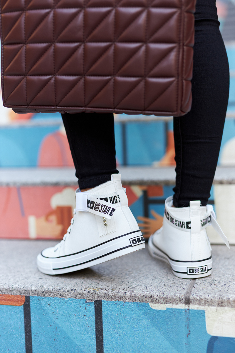 Damskie trampki polskiej marki BIG STAR. Kultowe już trampki zostały ozdobione paskiem. Wykonane z eko skóry. Posiadają ocieplenie w postaci miłego w dotyku futerka, dzięki któremu chłodne dni nie będą już takie straszne! Z boku cholewki znajduje się element ozdobny w postaci suwaka. Koniecznie sprawdź całą naszą kolekcję butów BIG STAR. Przy wyborze rozmiaru prosimy sugerować się tabelą rozmiarów.