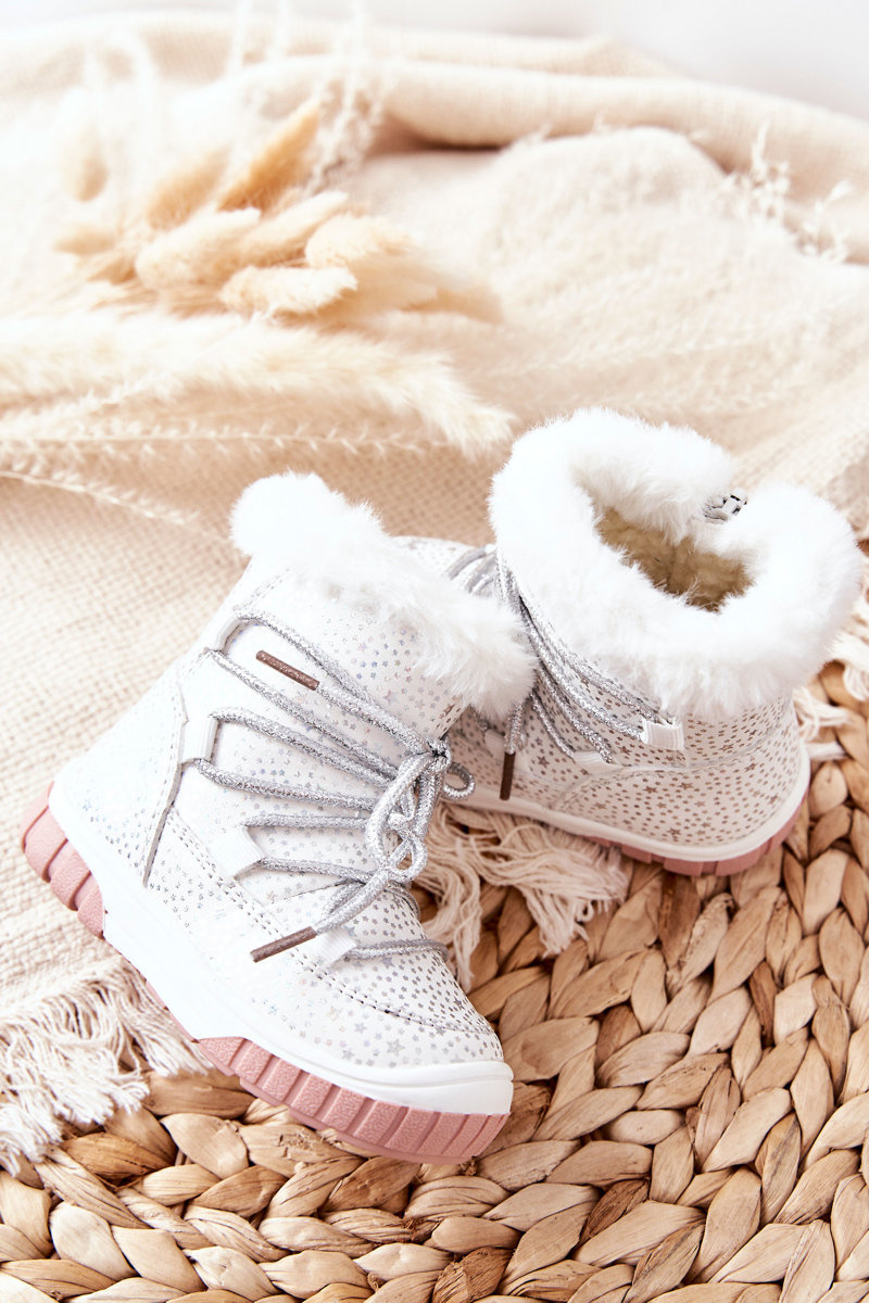 Botki Śniegowce Ocieplane Z Futerkiem Białe Stars