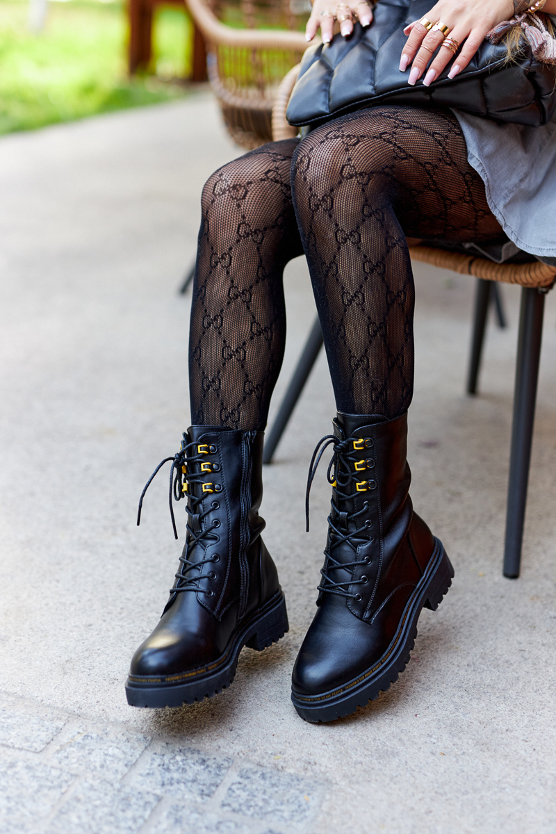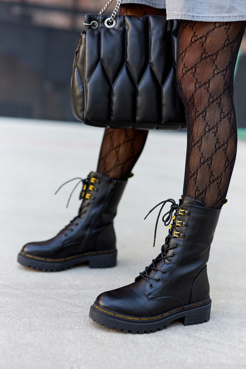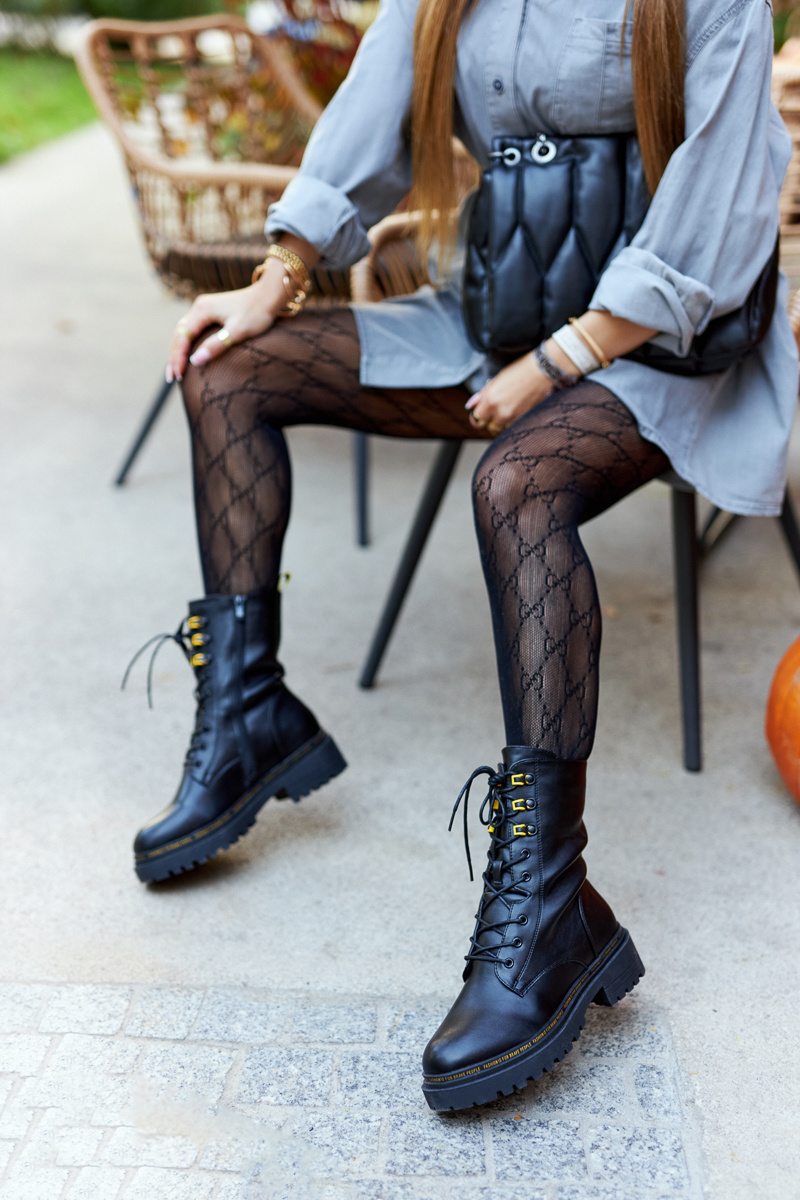 Klasyczne wysokie workery posiadają wiązanie oraz suwak. Przy podeszwie znajduje się mały napis. Botki są ocieplane kocem obuwniczym. Piękne botki nadadzą charakteru Twojej stylizacji! Płaski obcas zapewnia stabilność. Sprawdź całą naszą kolekcję workerów! Przy wyborze rozmiaru prosimy sugerować się tabelą rozmiarów.