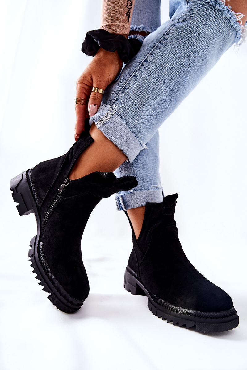 Botki Z Wycięciem Na Suwak Czarne Corano