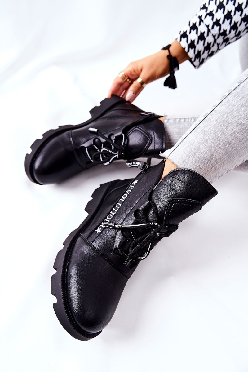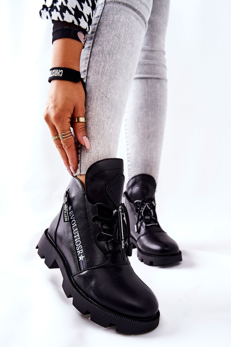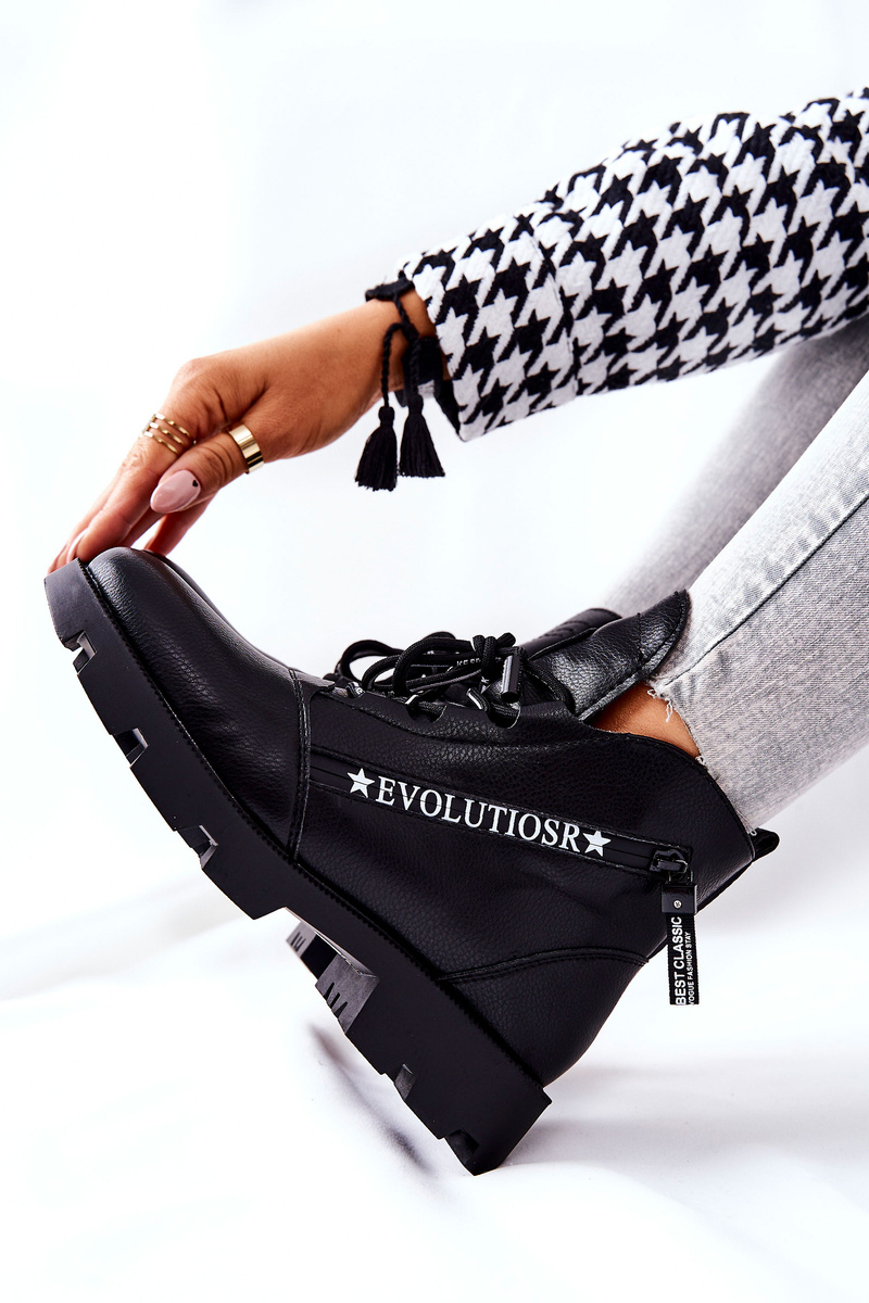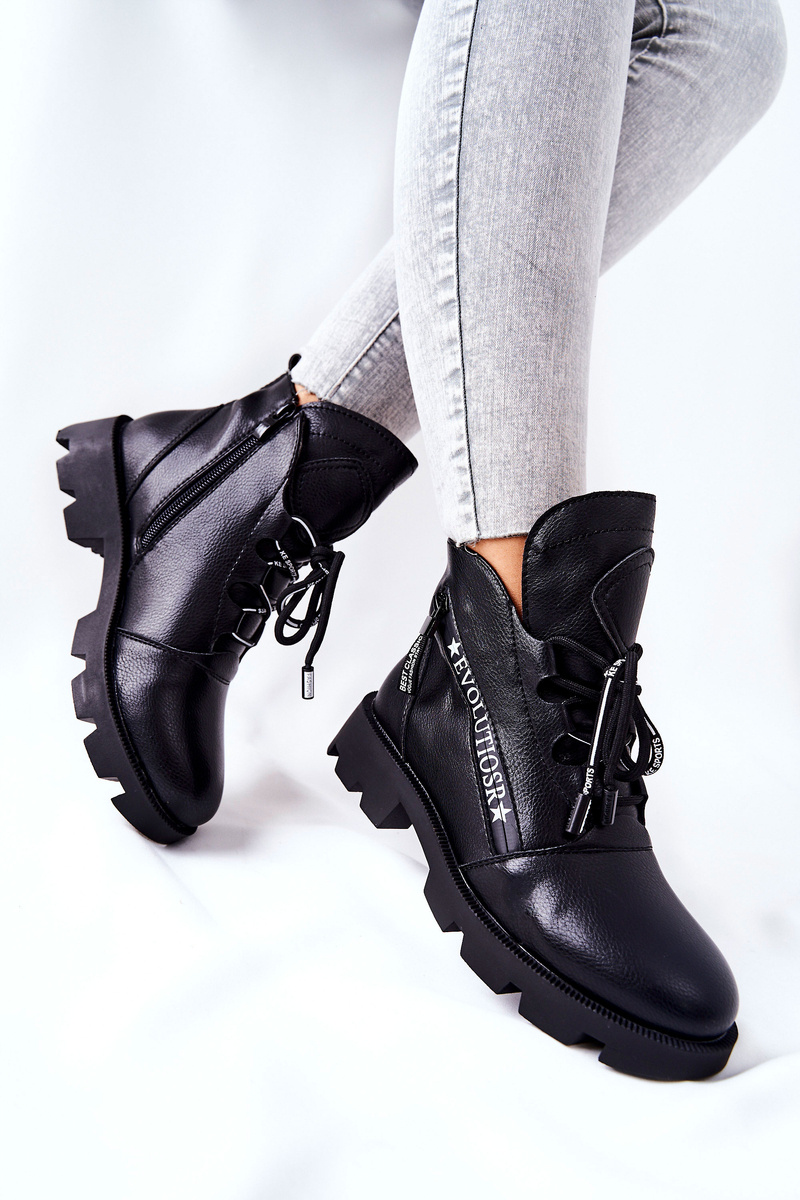 Botki wykonane z wysokogatunkowej eko skóry. Idealne na chłodniejsze dni. Posiadają w środki futerko, które sprawi, że będzie Ci w nich niezwykle ciepło. W botkach znajdują się dwa suwaki. Jeden z nich jest elementem ozdobnym. Można dopasować je do nogi, dzięki wiązaniu. Obowiązkowo sprawdź naszą całą kolekcję botków! Przy wyborze rozmiaru prosimy sugerować się tabelą rozmiarów.