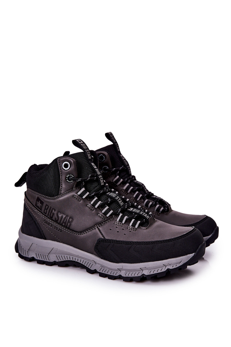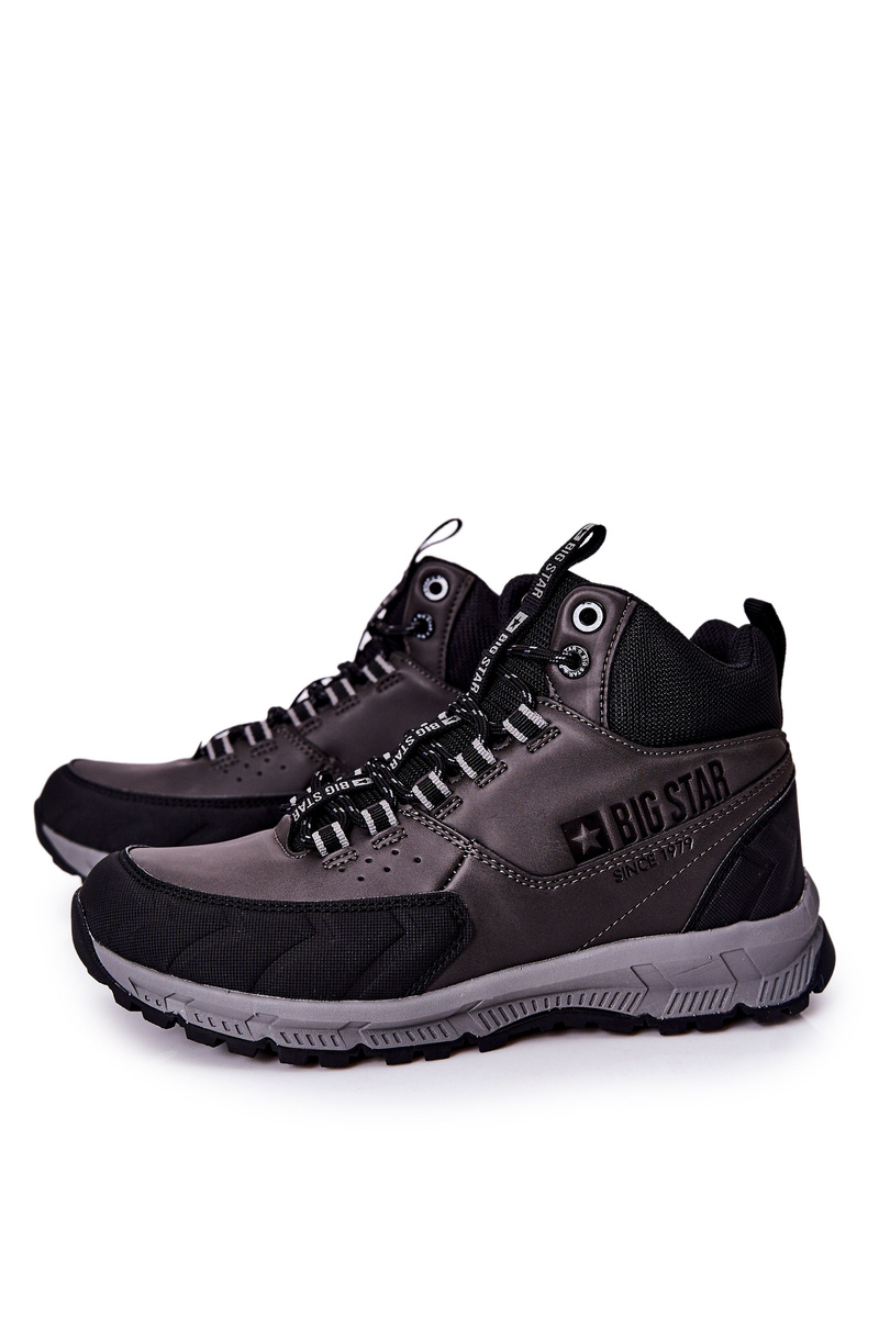 Wysokie męskie sportowe buty od polskiej marki Big Star. Idealne dla fanów dalekich spacerów czy wycieczek. Buty zostały wykonane z eko skóry oraz materiału tekstylnego. Posiadają wiązanie. Na długości języka widnieje pasek z logo marki Big Star. Nie możesz przegapić takiej okazji! Kup zanim znikną! Podczas wyboru rozmiaru prosimy sugerować się tabelą rozmiarów.