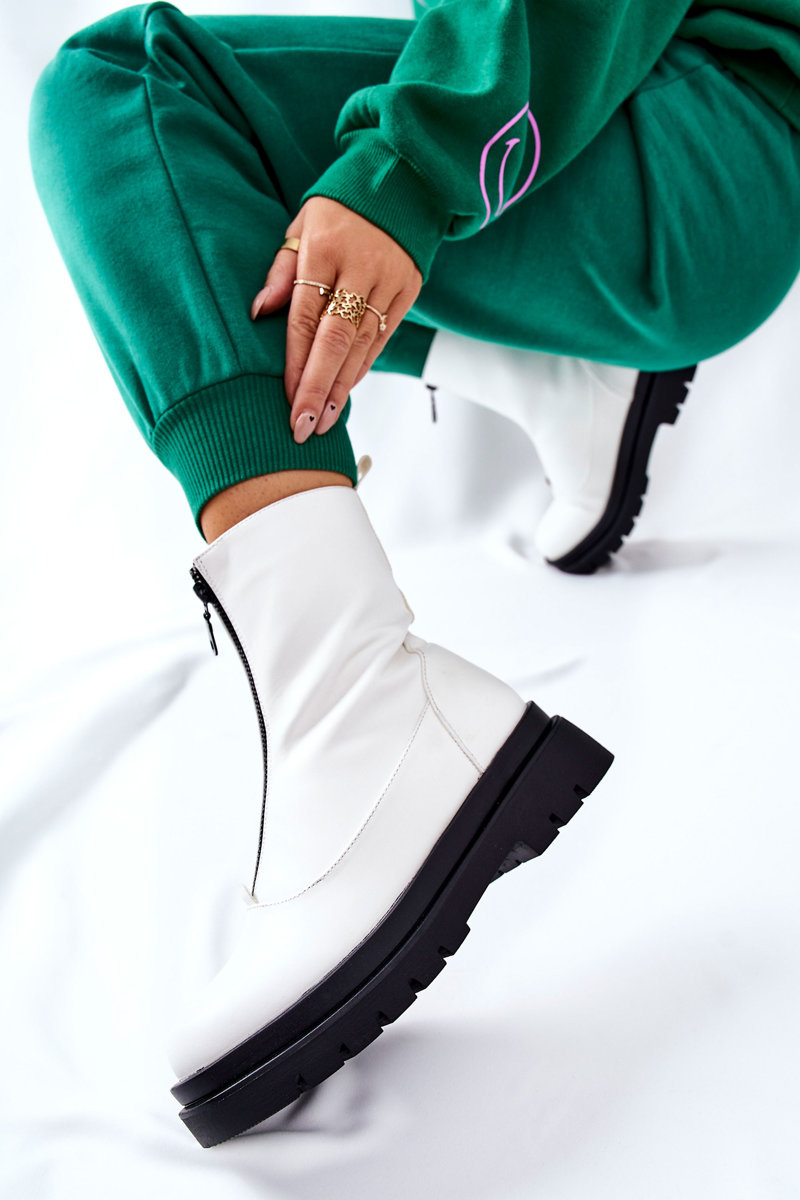 Botki Damskie Z Suwakiem Białe Tierra
