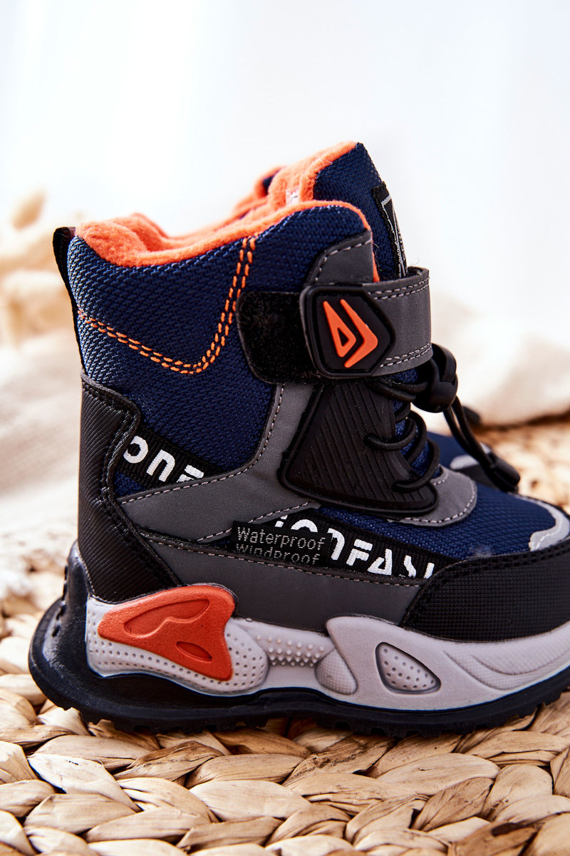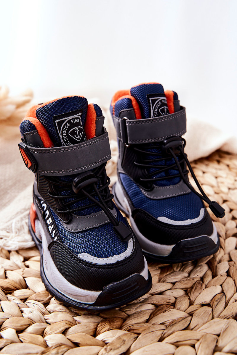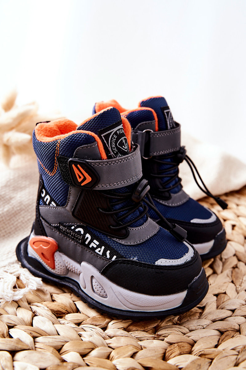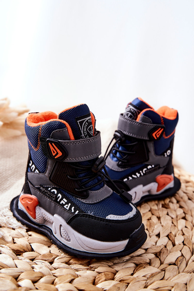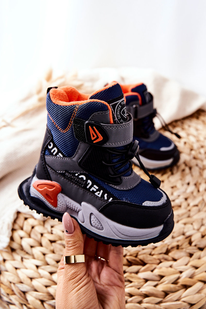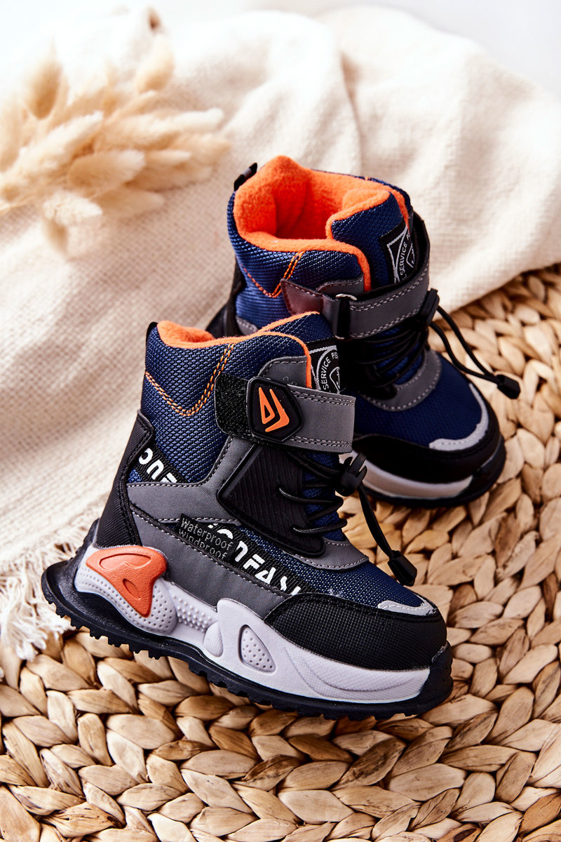Ocieplane Botki Na Rzep Granatowo-Szare Darel