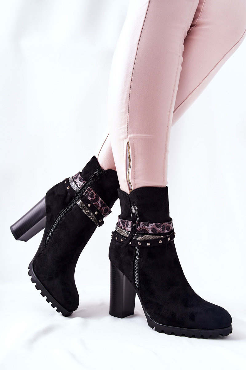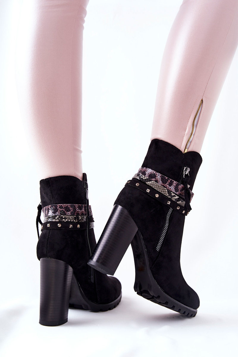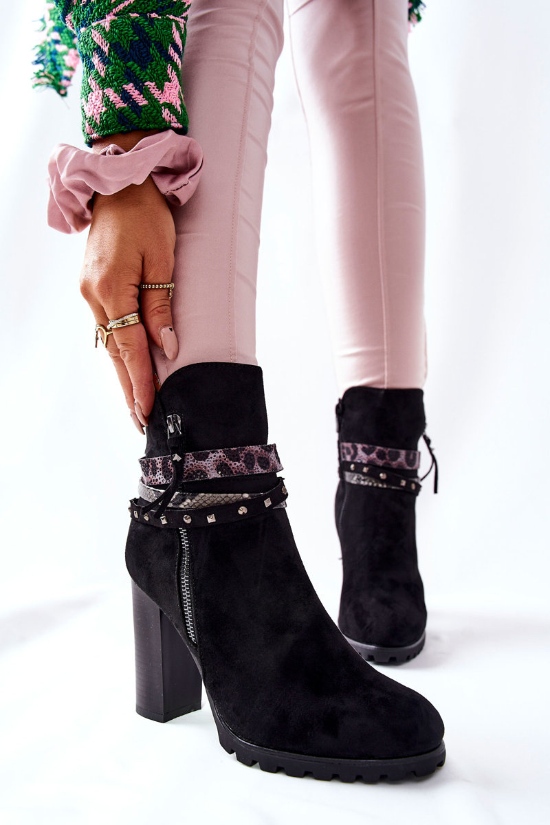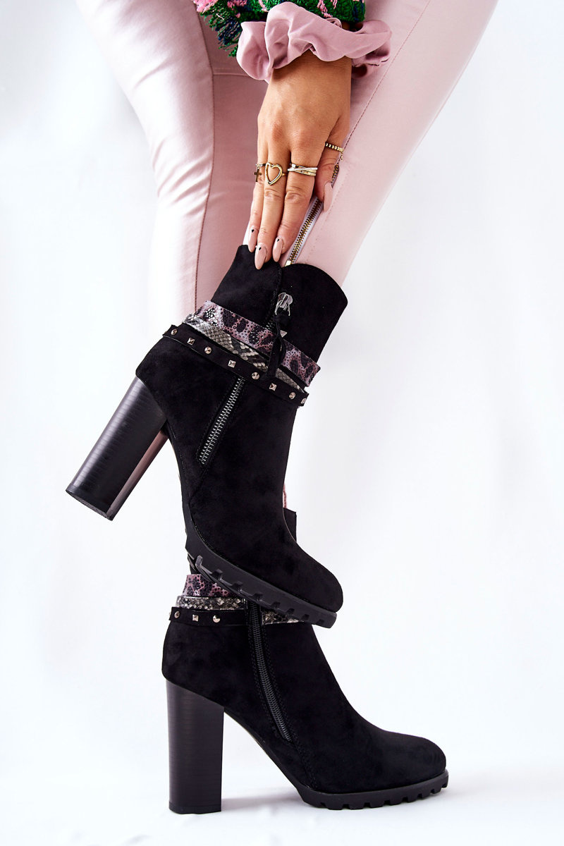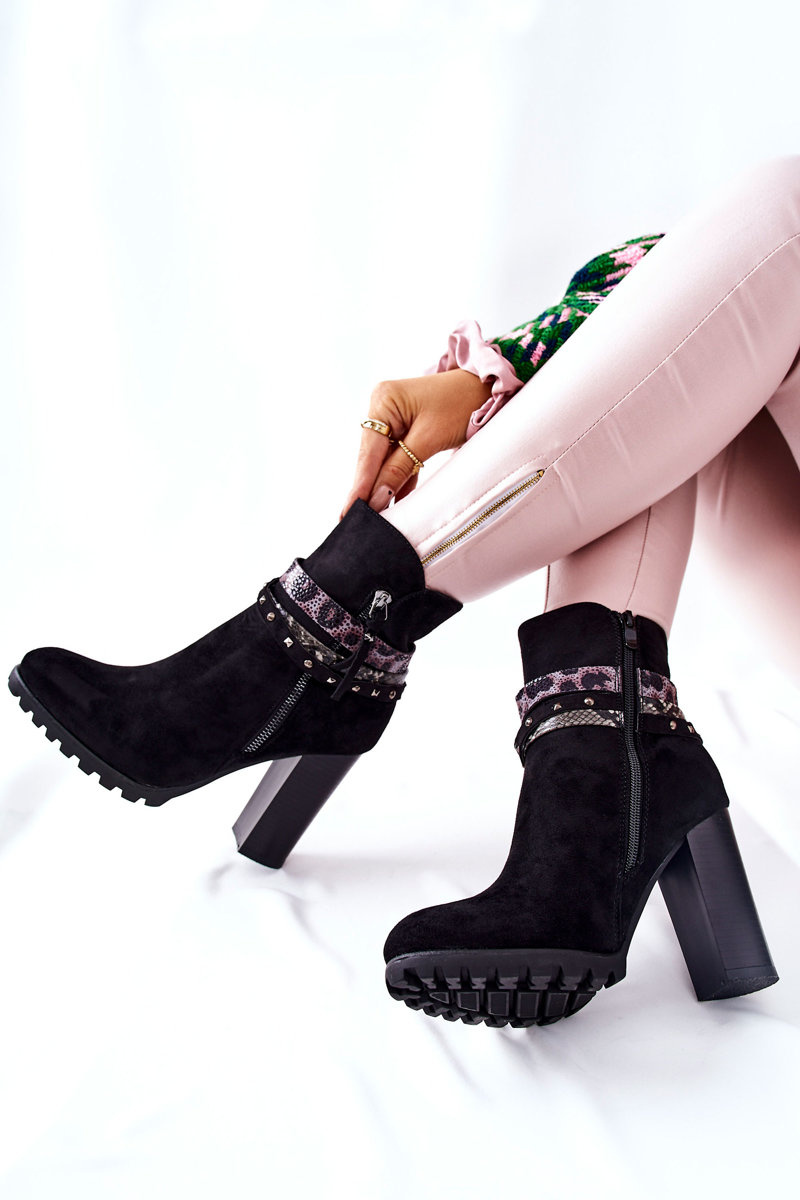 Zamszowe Botki Na Wysokim Słupku Czarne Besis