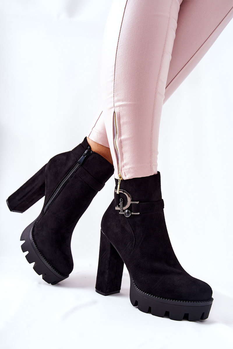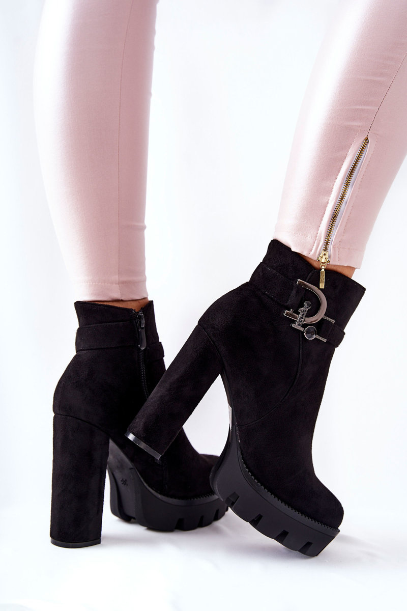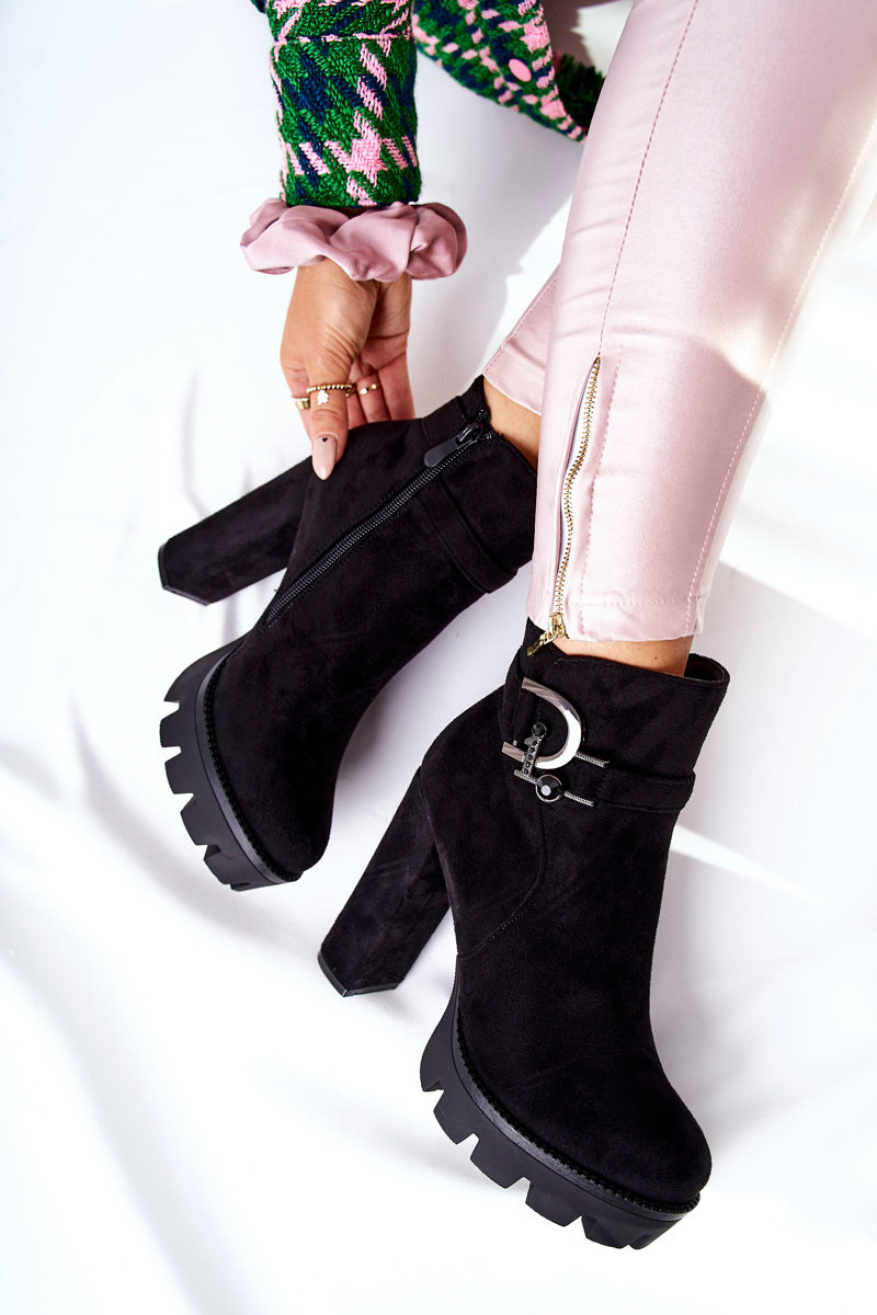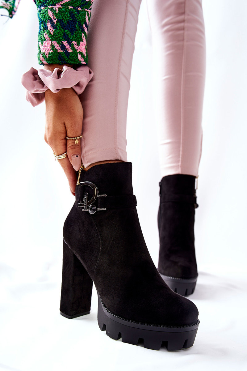 Zamszowe Botki Na Wysokim Obcasie Czarne Dianne