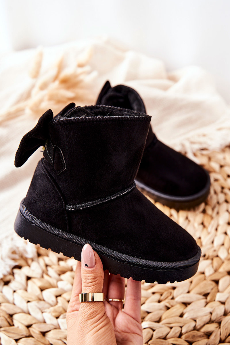 Dziecięce Ocieplane Śniegowce Z Kokardą Czarne Lolila