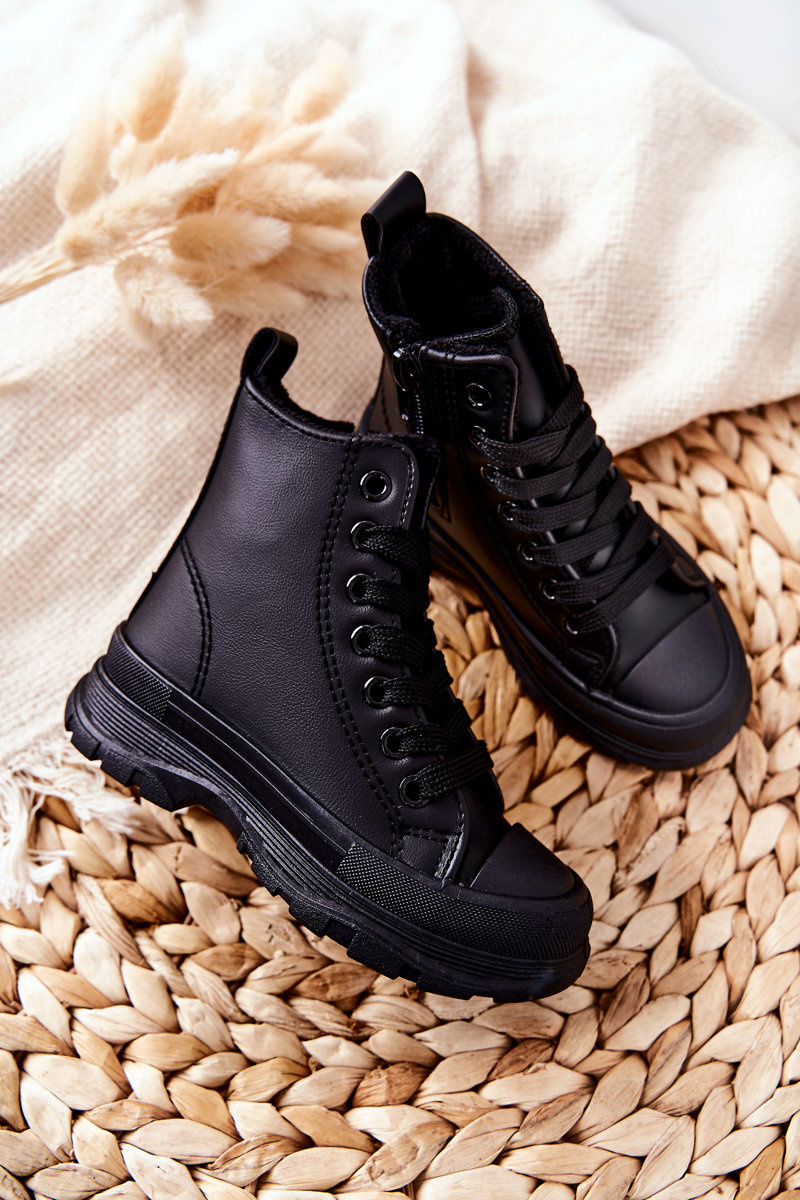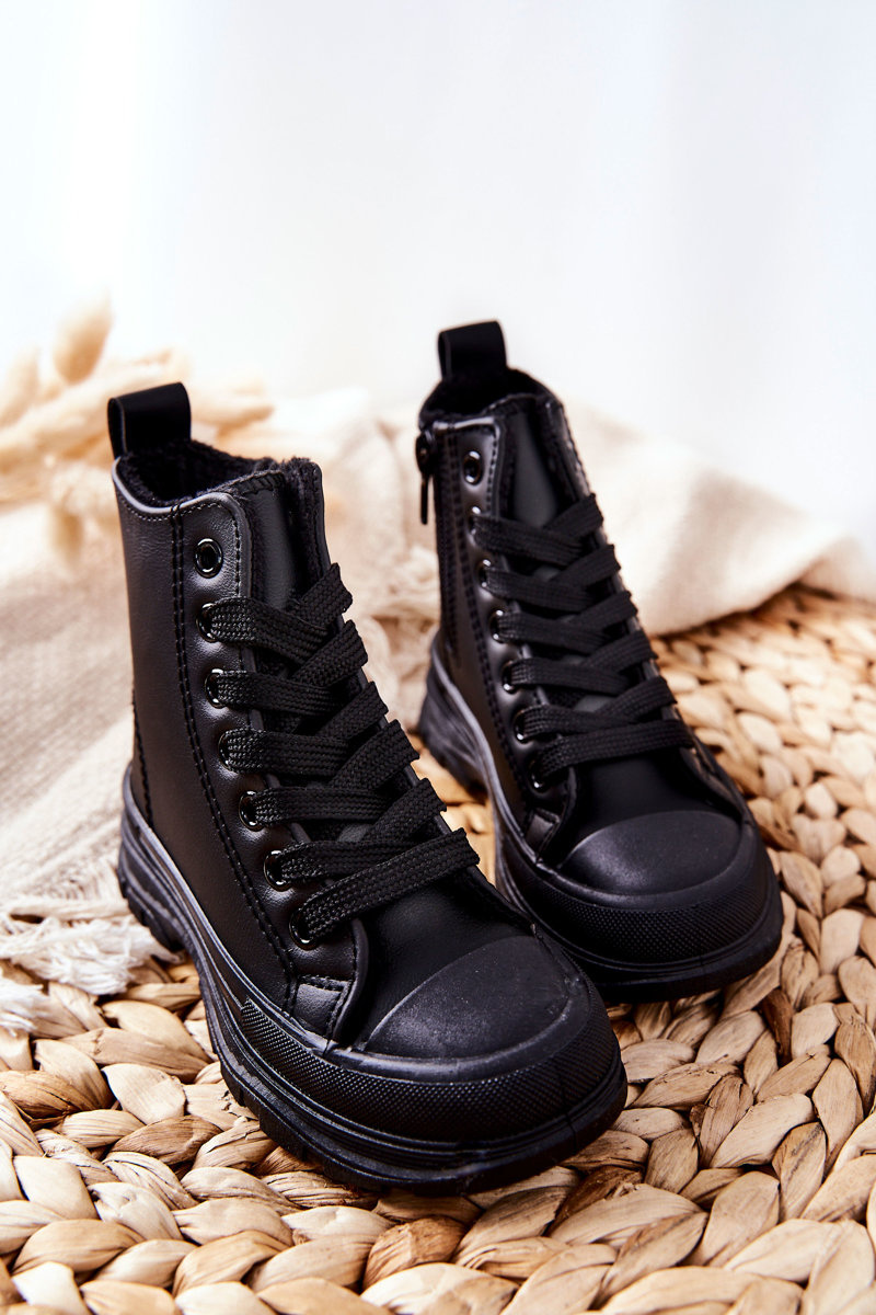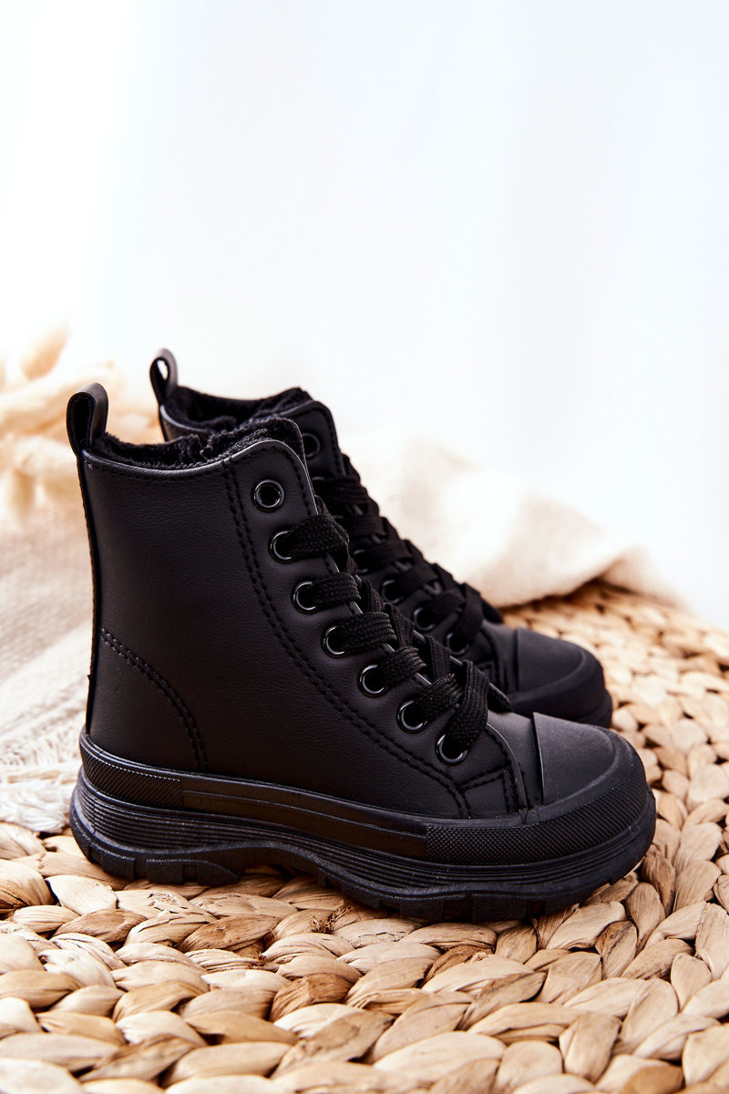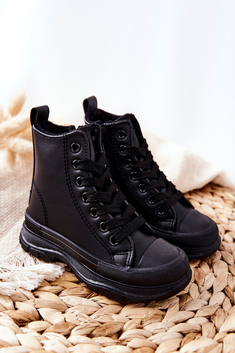 Dziecięce Skórzane Ocieplane Trampki Czarne Bomi