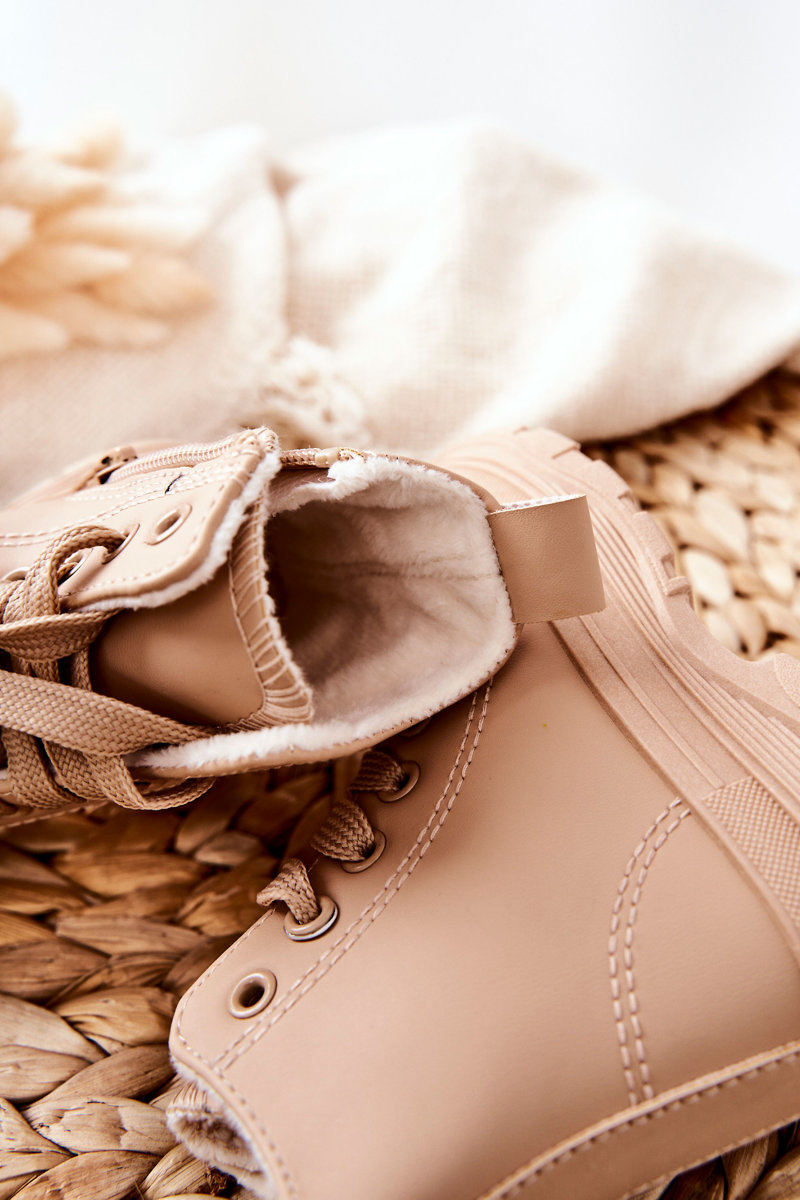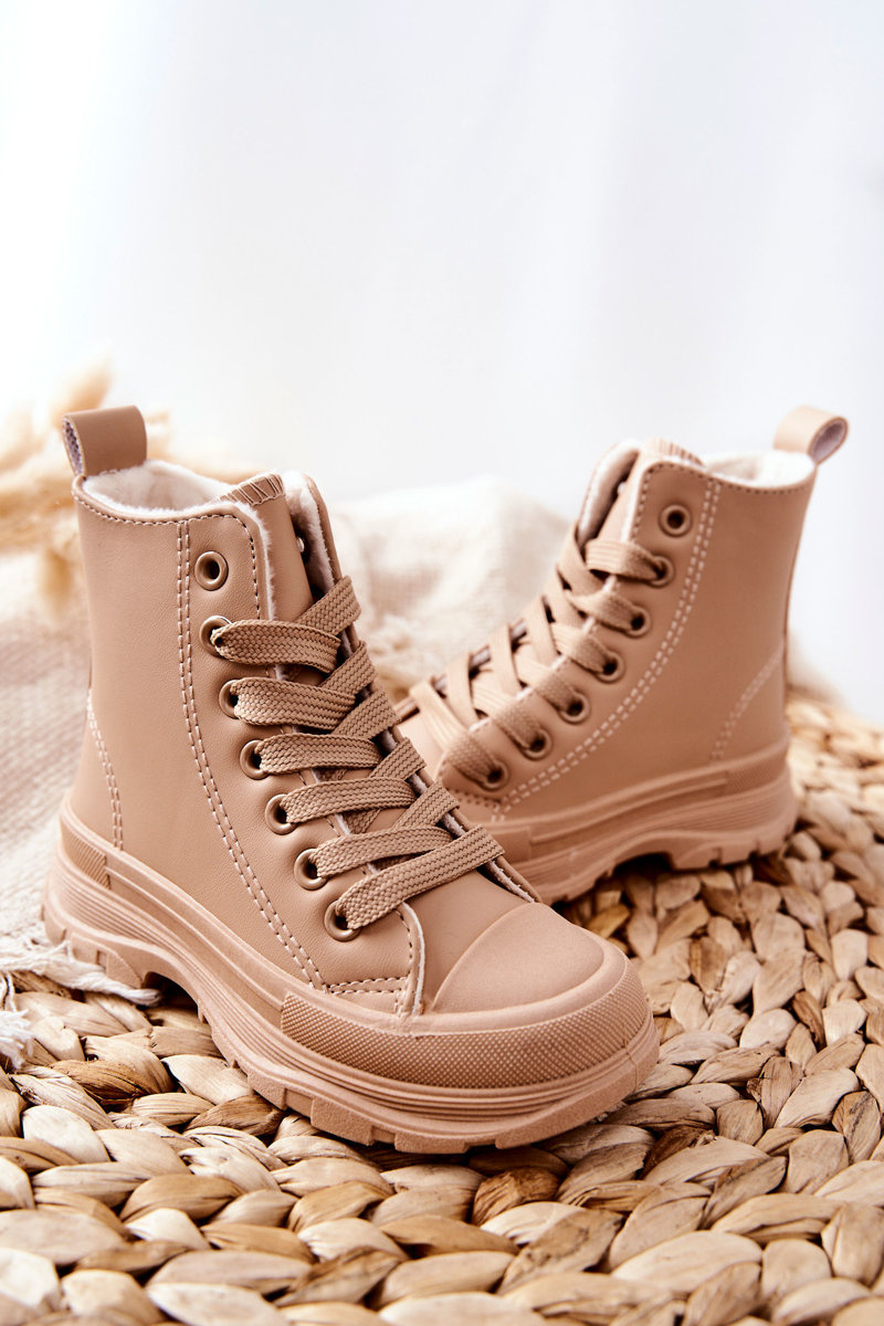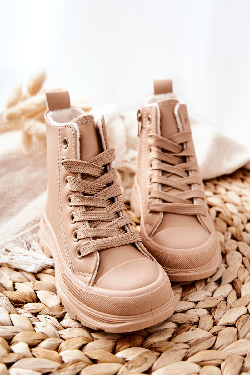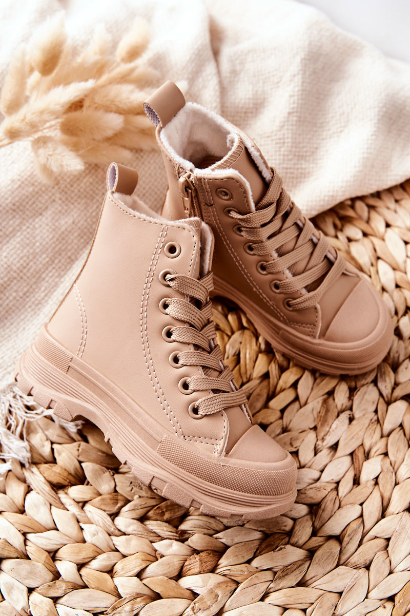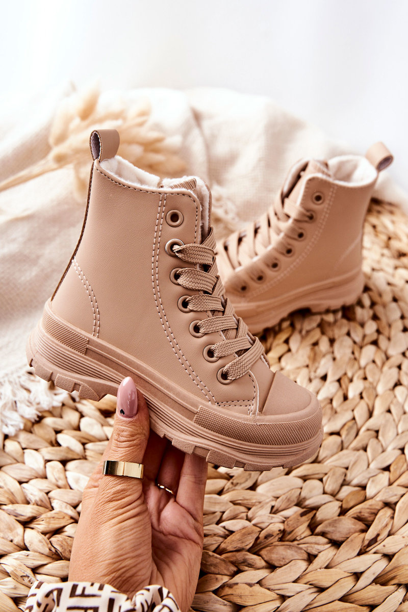 Dziecięce Skórzane Ocieplane Trampki Beżowe Bomi